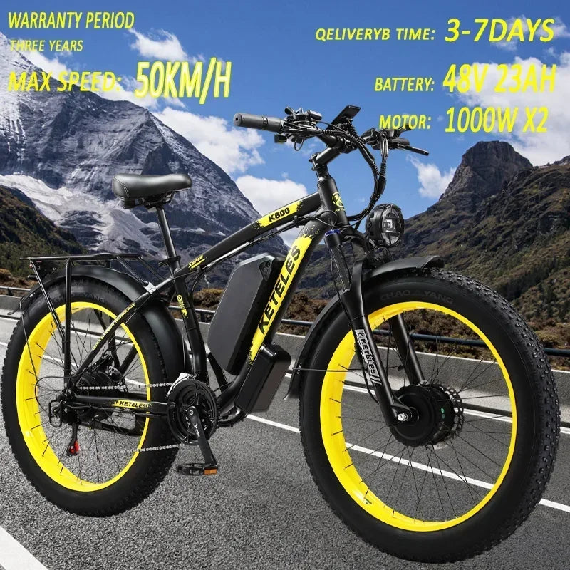 Kajelaisi 3000W Dual Motor Electric Bike – 52V 26Ah Battery, Full Suspension, Hydraulic Brakes, 24x4.0 Fat Tires, 38 MPH Off-Road E-Bike for Adults