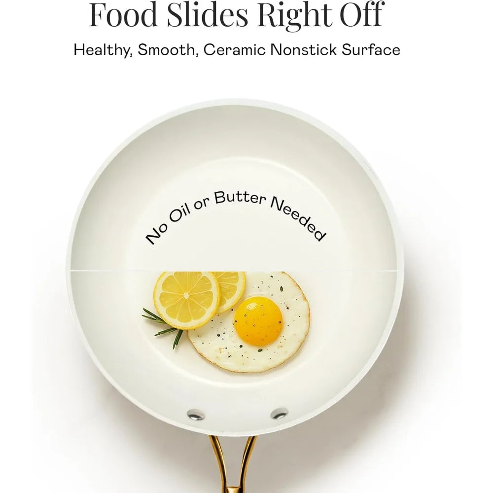 - Ultra Nonstick Ceramic Coating: Reinforced ceramic surface allows food to slide right off—no oil or butter needed.