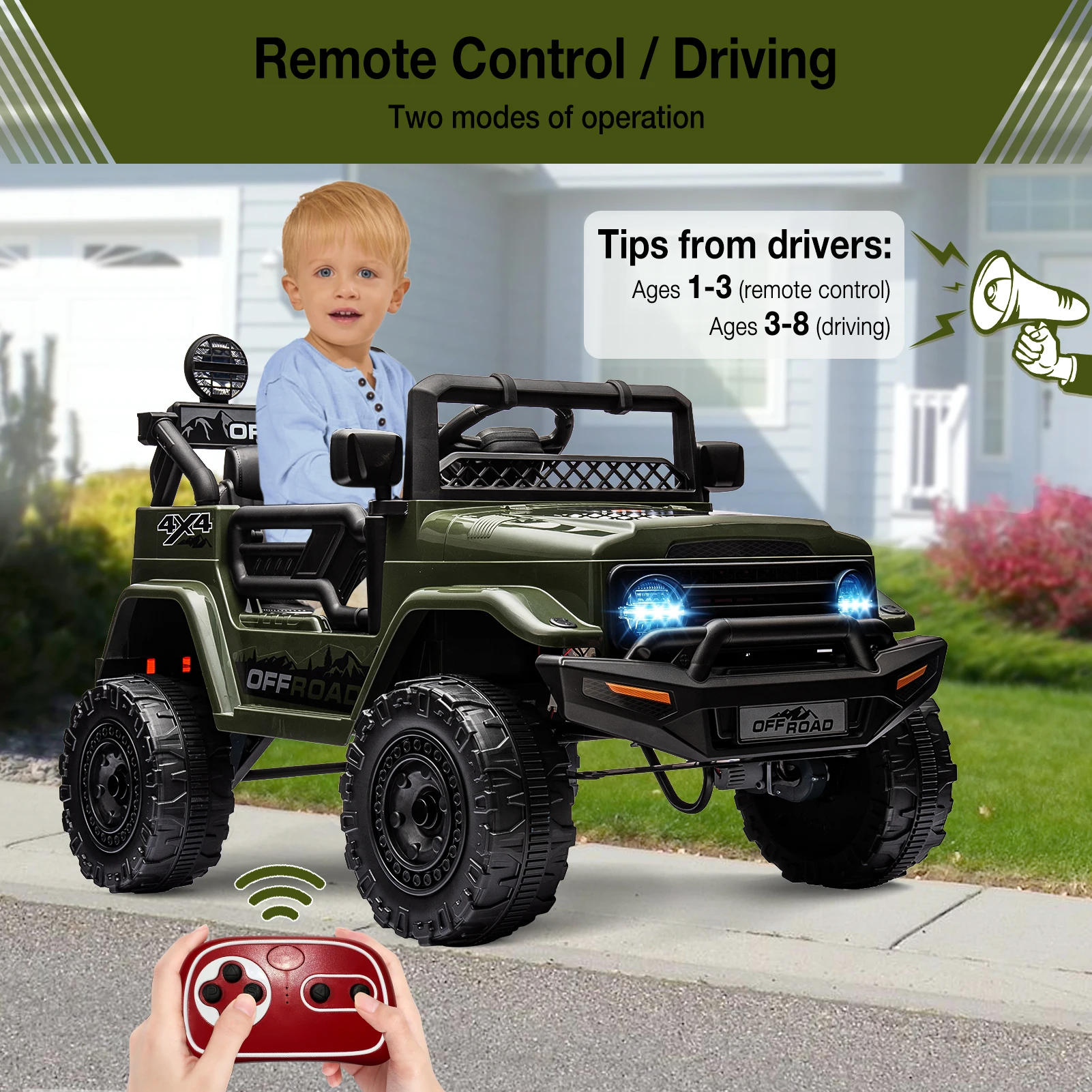 2.4GHz remote gives parents full command over movement and speed for added safety