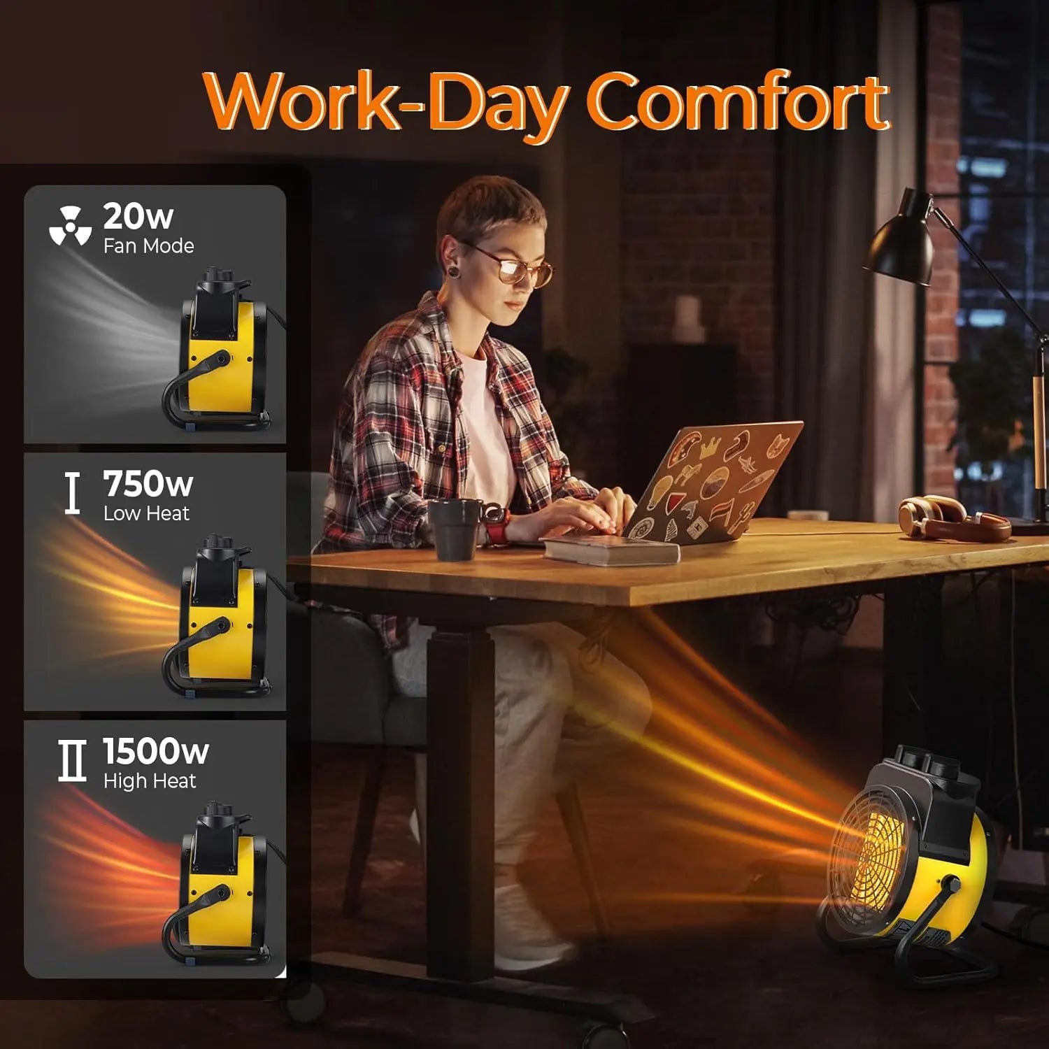 Choose from High Heat (1500W), Low Heat (750W), or Natural Wind for year-round use.