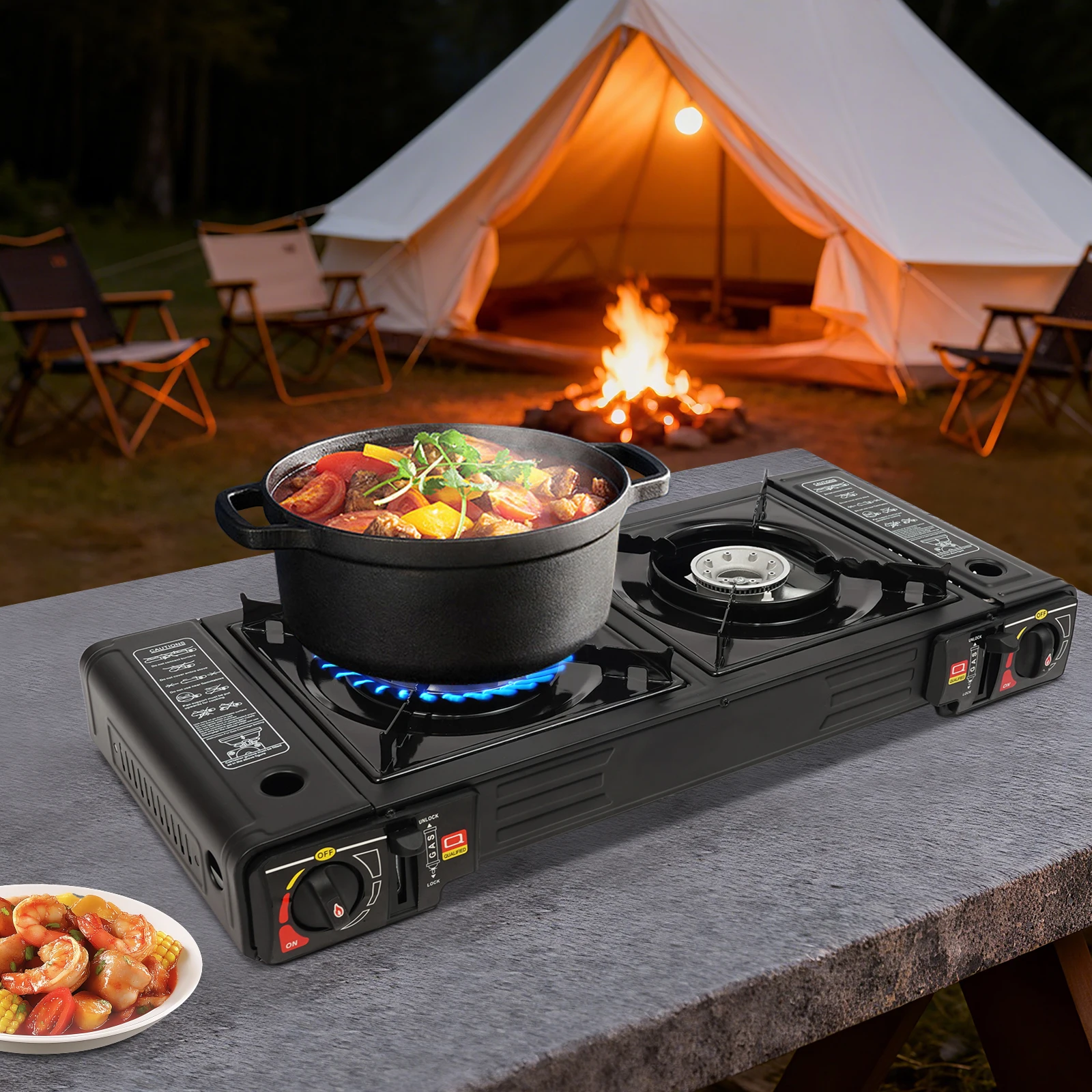 Whether you're camping for the weekend or cooking in your backyard, this 2-Burner Portable Gas Stove delivers reliable heat and versatile performance. Get yours today and enjoy safe, fast, and easy outdoor meals wherever you go.
