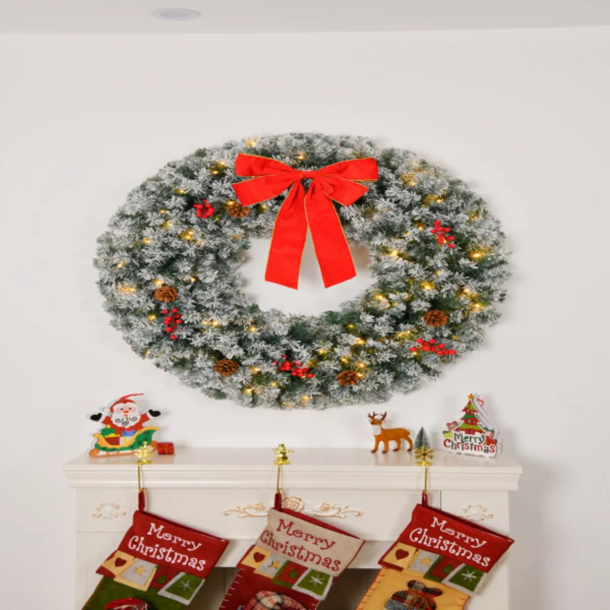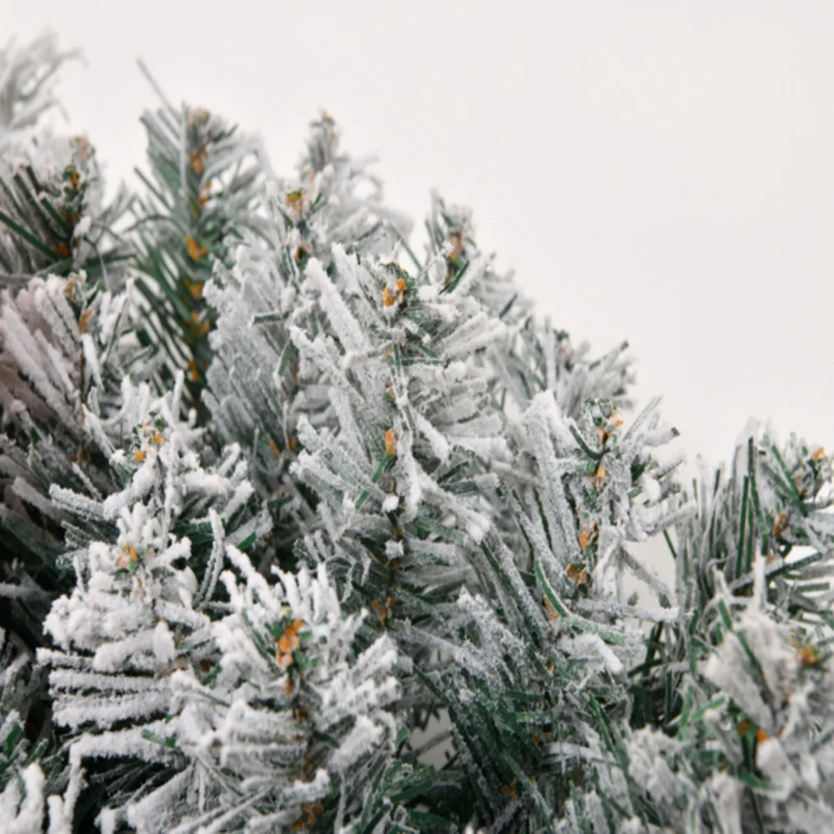 1. Lush & Snow Flocked: Our beautifully crafted Christmas wreath boasts meticulously designed PVC branches dusted in a delicate snow flocking. Each branch mimics the fullness and natural beauty of a real fir wreath, providing a lush, inviting display that enhances the holiday spirit on your mantel, front door, or hallway.