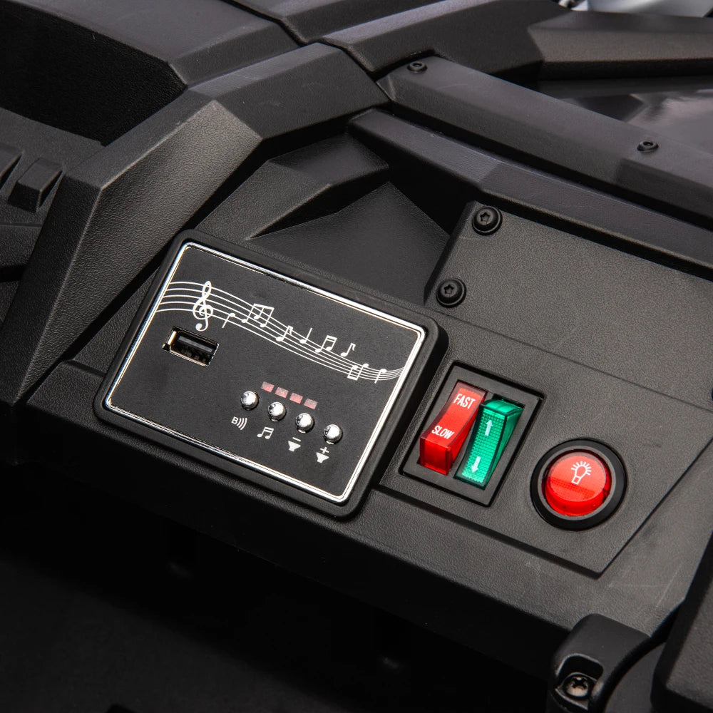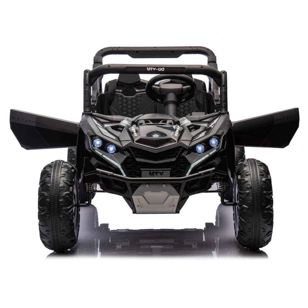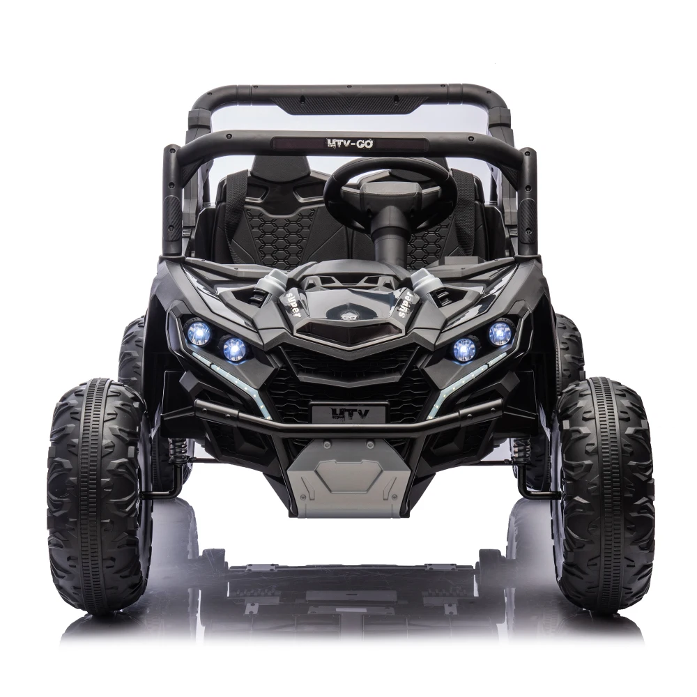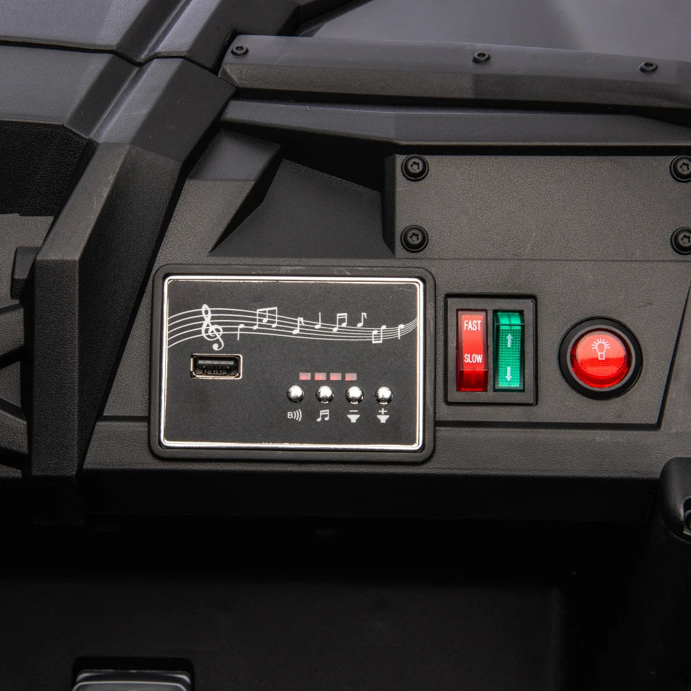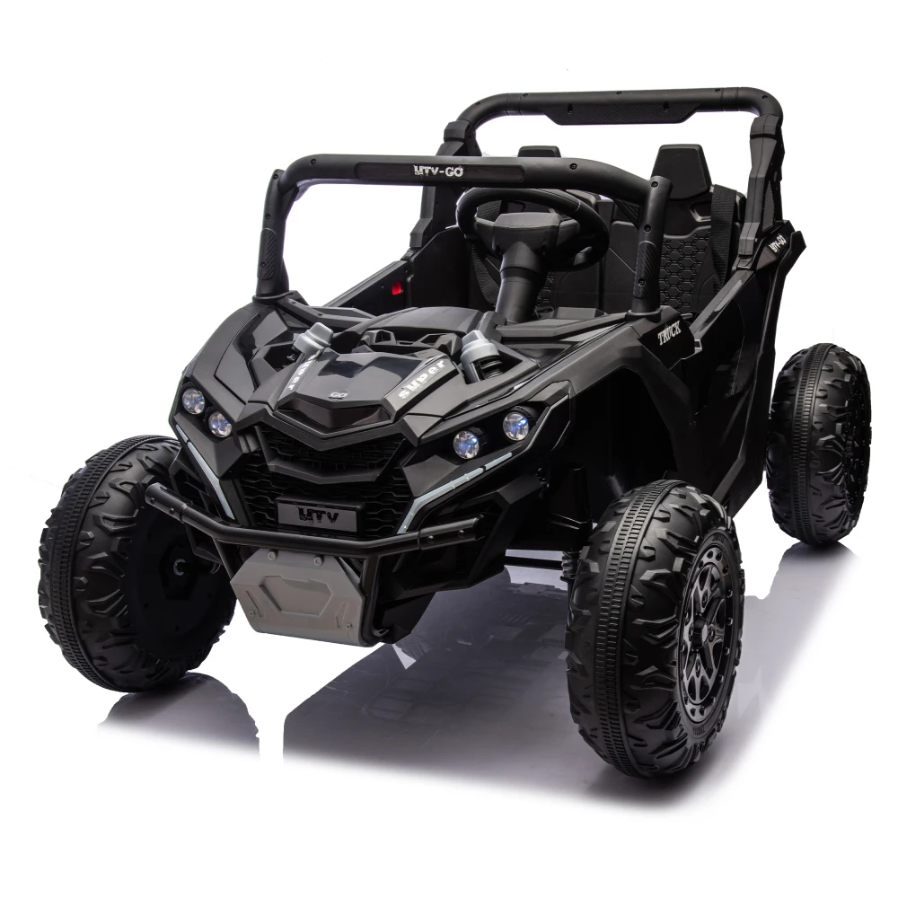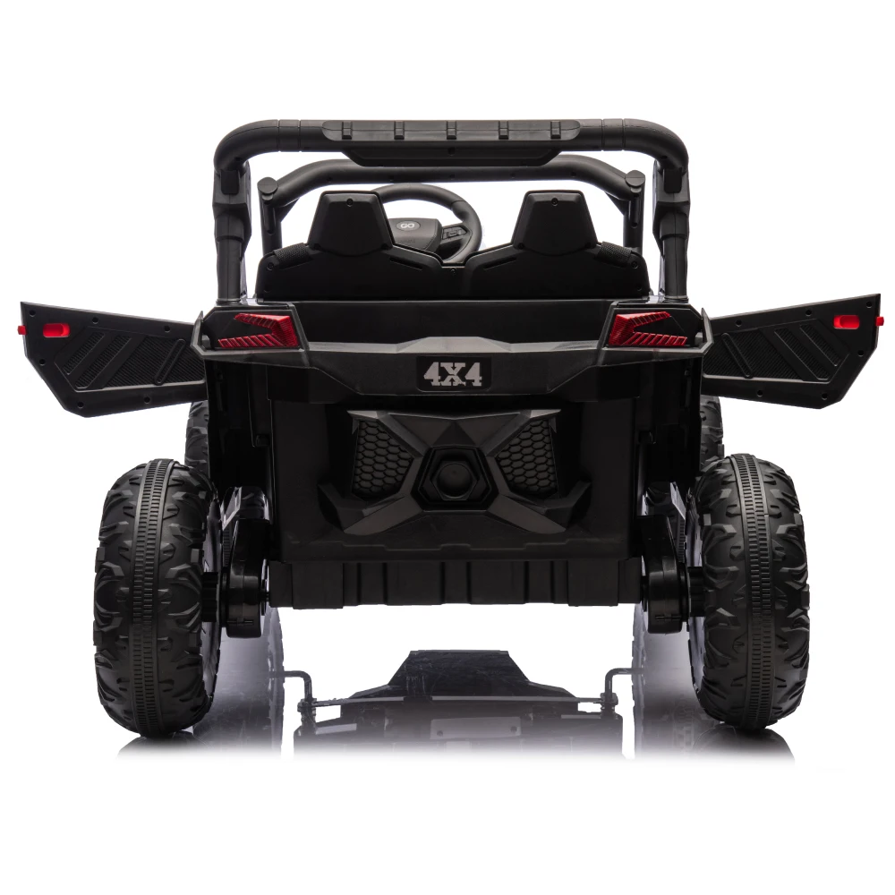 This 24V Two-Seater Ride-On UTV is built for big fun, safe play, and off-road-style exploration. With a powerful 24V battery, real dual seating, and remote parental control, it delivers a fun and secure driving experience for kids aged 3 and up. The oversized tires, four-wheel suspension, and front anti-collision bar give it serious terrain-handling power, while multimedia features like built-in music and volume control keep the adventure exciting.