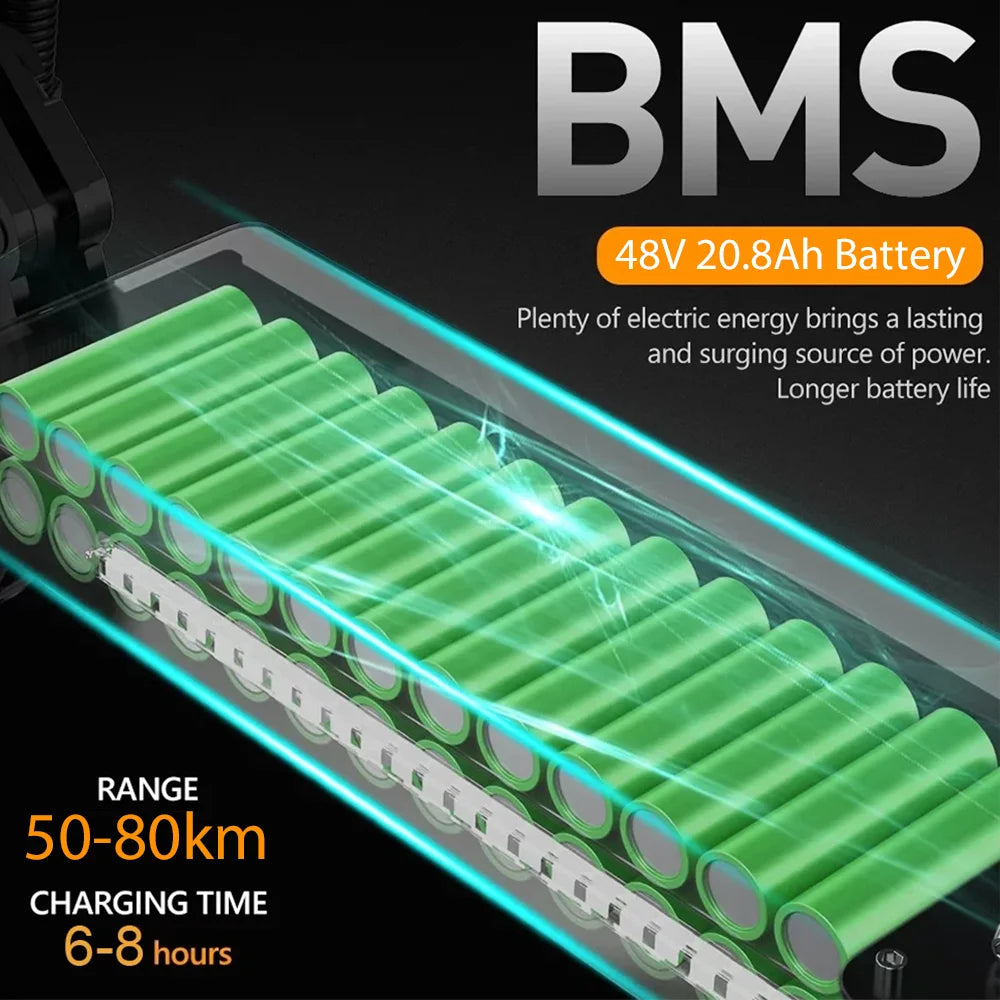 - Battery Capacity: 48V 20.8Ah Lithium-ion