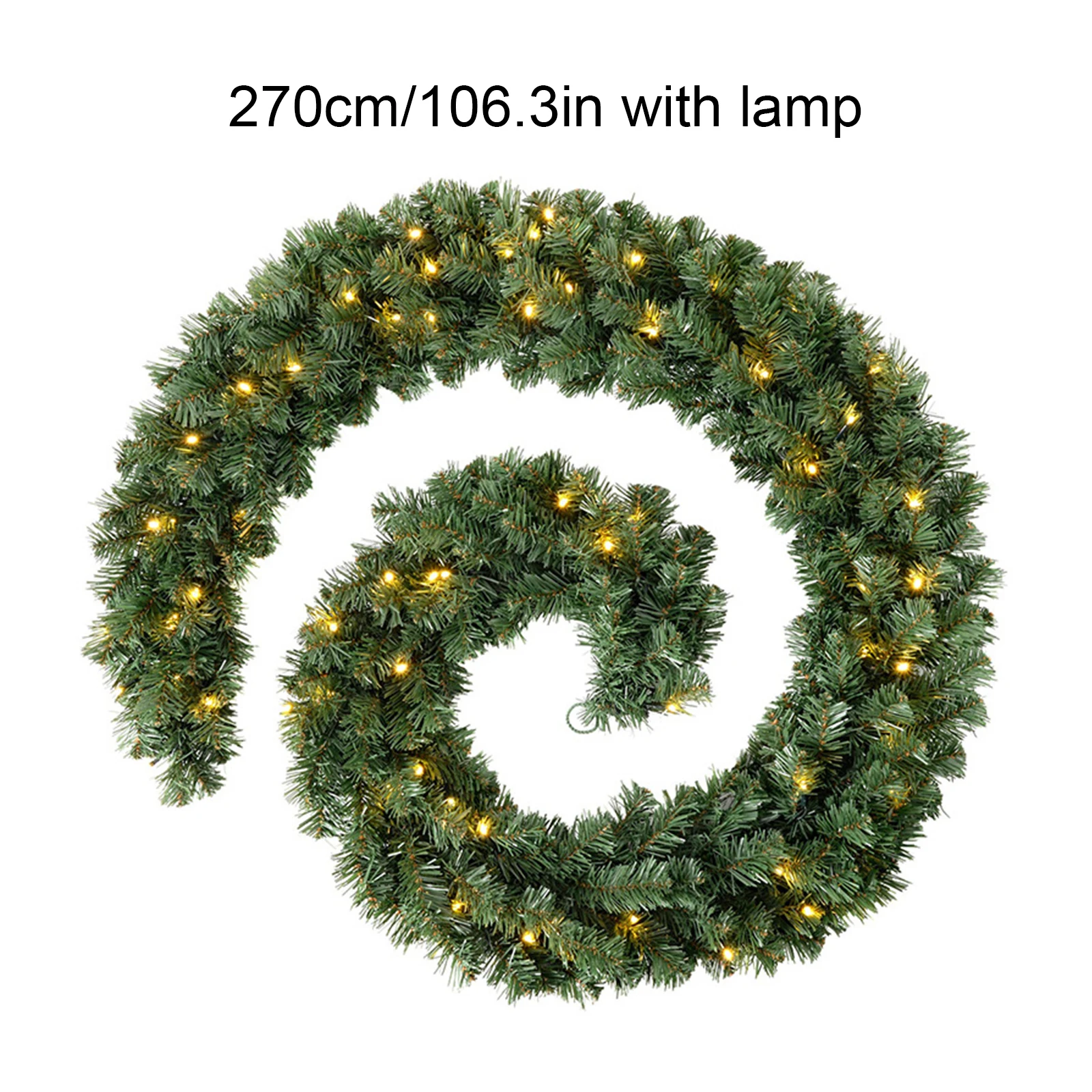 270cm Christmas Garland with 50 LED Lights Decorations Wreath Artificial Christmas Wreaths for Fireplace Stair Front Door Xmas Tree Decor