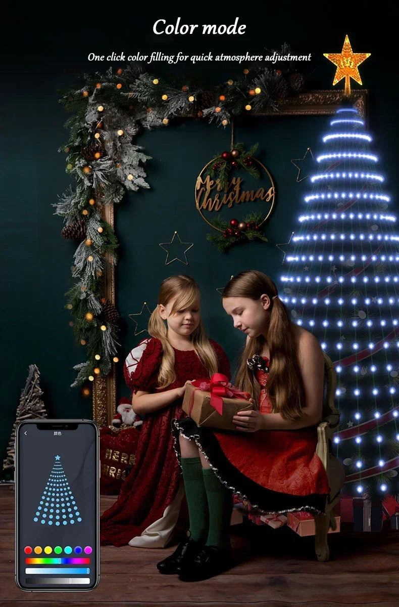 This Christmas tree star light has 400 LEDs, with one star light at one end and 20 strings of lights, each 1.5 meters long. Composed of ultra bright chips and high-quality PVC wires. Flexible PVC green fibers can be bent into any shape you want, almost invisible when wrapped around Christmas trees or shrubs.