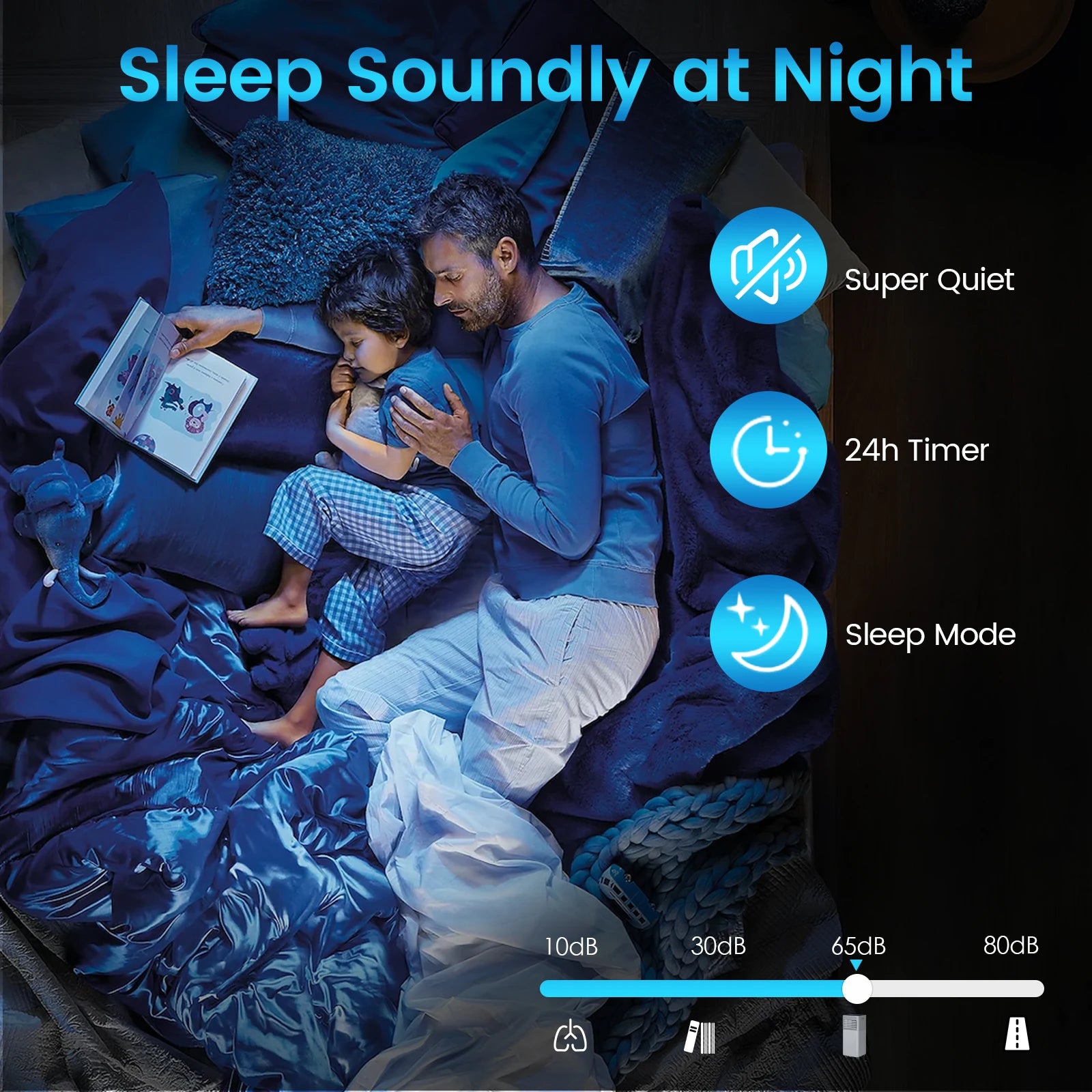 - Quiet Sleep Mode & Timer: Low-noise operation and 24-hour timer ensure restful sleep and efficient energy use.