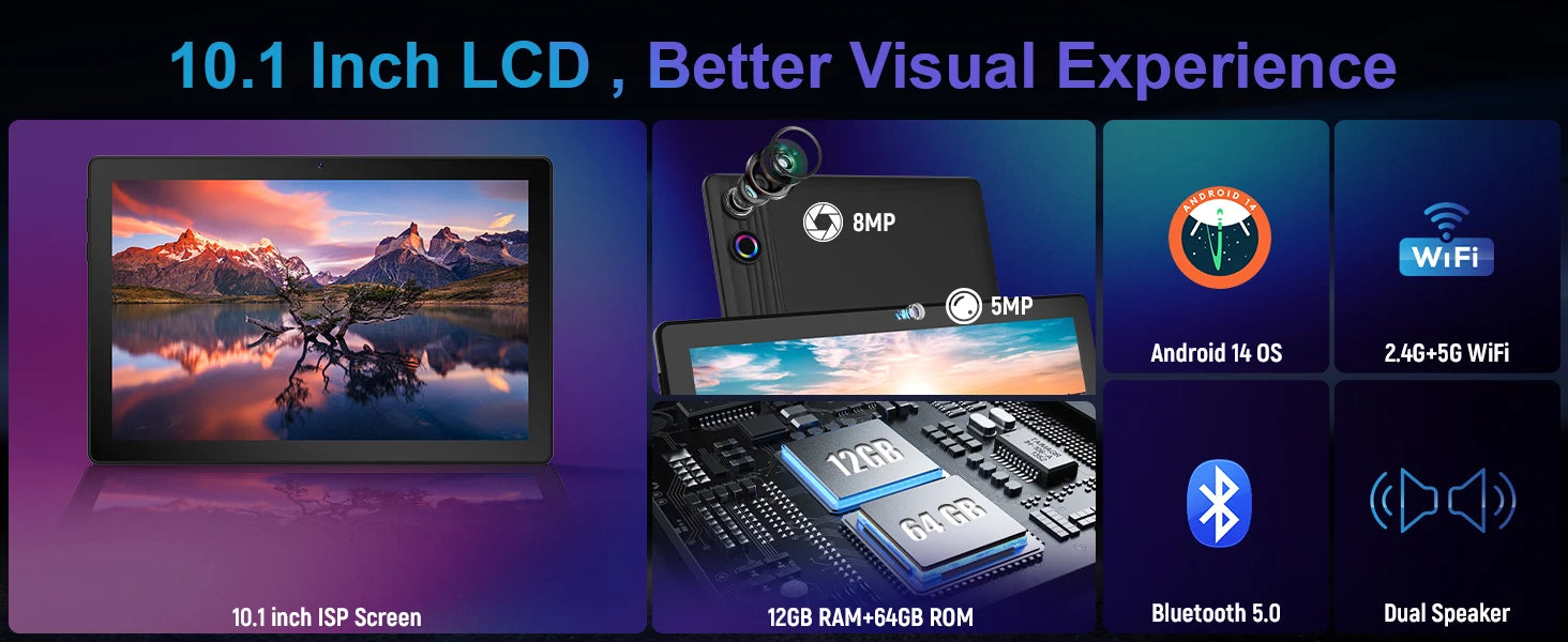 Featuring a 10.1-inch HD IPS display, 12GB RAM, and 64GB storage, this tablet delivers vibrant visuals and smooth multitasking. The latest Android 14 OS enhances speed, privacy, and customization, while Wi-Fi 6 and Bluetooth 5.0 ensure fast, reliable connectivity wherever you go. Lightweight, durable, and packed with powerful features, it’s perfect for students, professionals, and families alike.