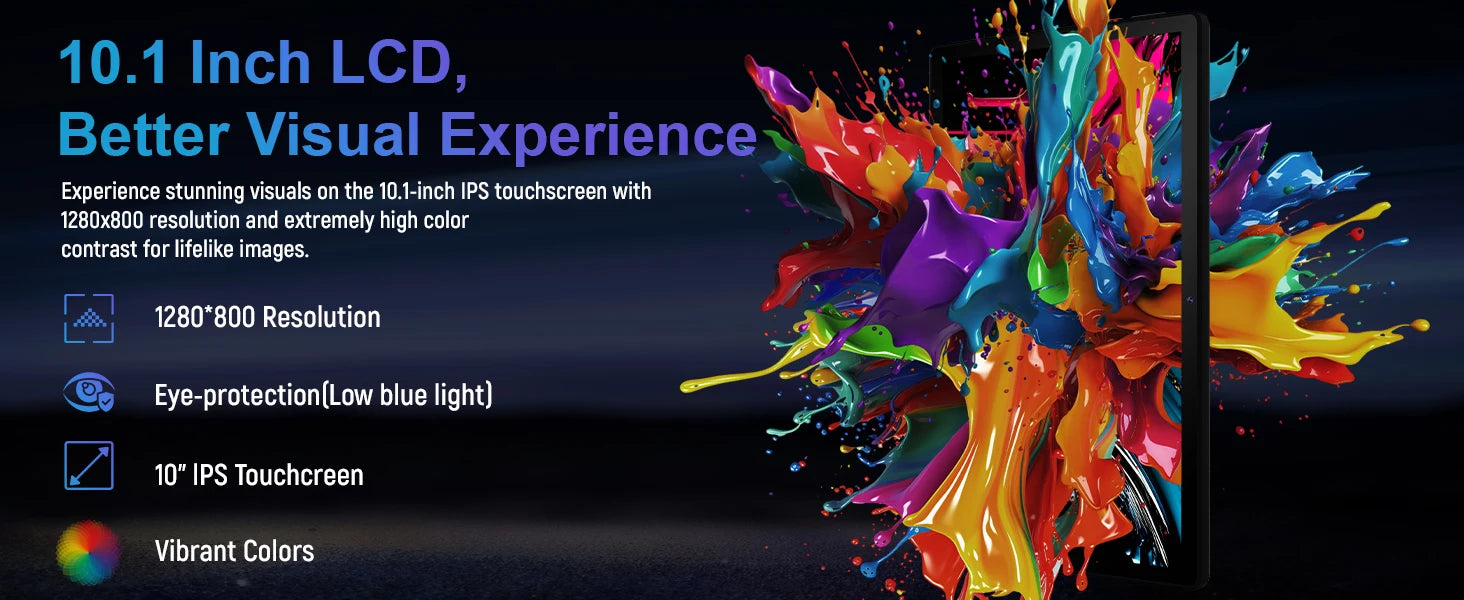 - 10.1-Inch HD IPS Display: 1280×800 resolution with low blue light and vibrant color performance for immersive viewing.
