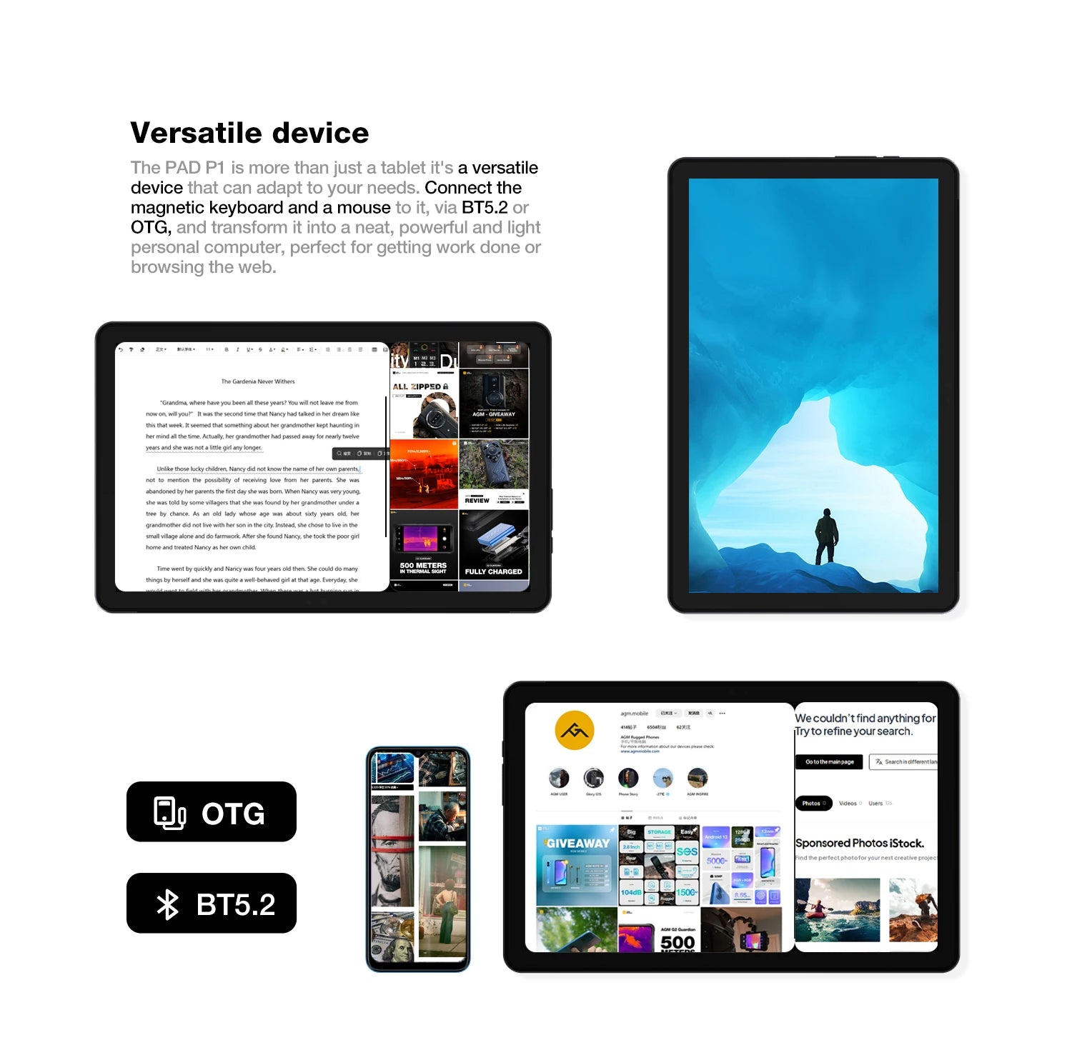 The AGM PAD P1 is the ultimate companion for anyone seeking a perfect balance between strength, performance, and versatility. Designed for professionals, travelers, and outdoor enthusiasts alike, it’s built to handle tough environments while delivering powerful everyday performance. Whether you need a reliable device for demanding job sites, a durable tablet for outdoor adventures, or an entertainment hub for your family, the PAD P1 stands out for its rugged durability, long battery life, and smooth multitasking experience. Backed by the trusted AGM brand, it’s a dependable investment that performs flawlessly wherever life takes you.