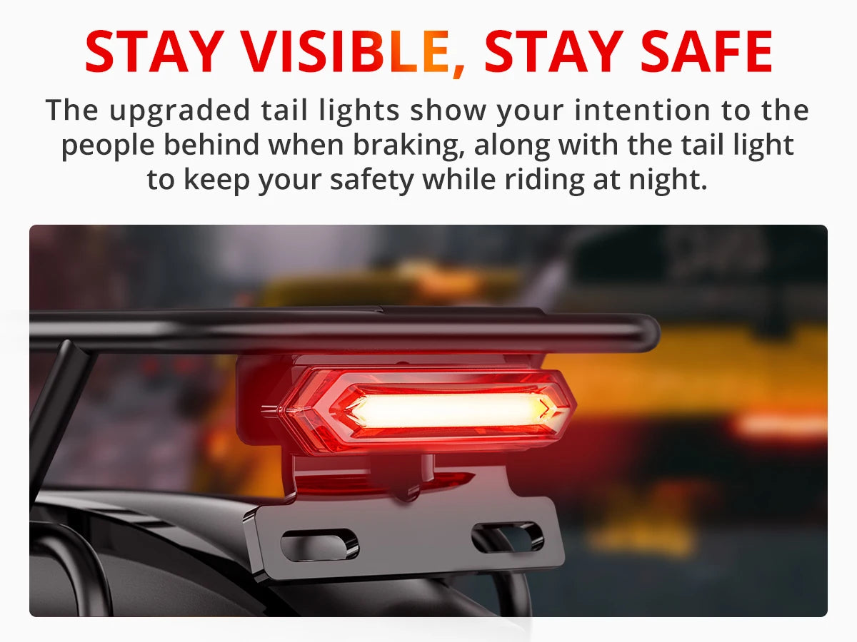 Integrated Rear Tail Light: Stay visible and safe with an upgraded tail light that signals braking.