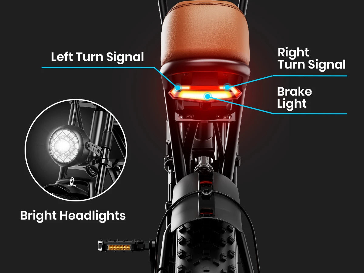 Full lighting setup with headlight, brake light, and rear turn signals
