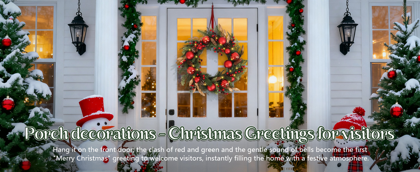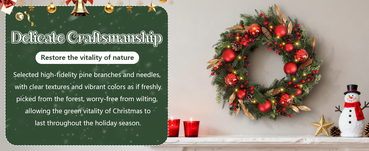 Battery Operated Christmas Wreath 24 Inch No Cords Needed 50 LED Lights & Shatterproof Berry/Ball Decor, Perfect for Outdoor Front Door and Window Holiday Decorating