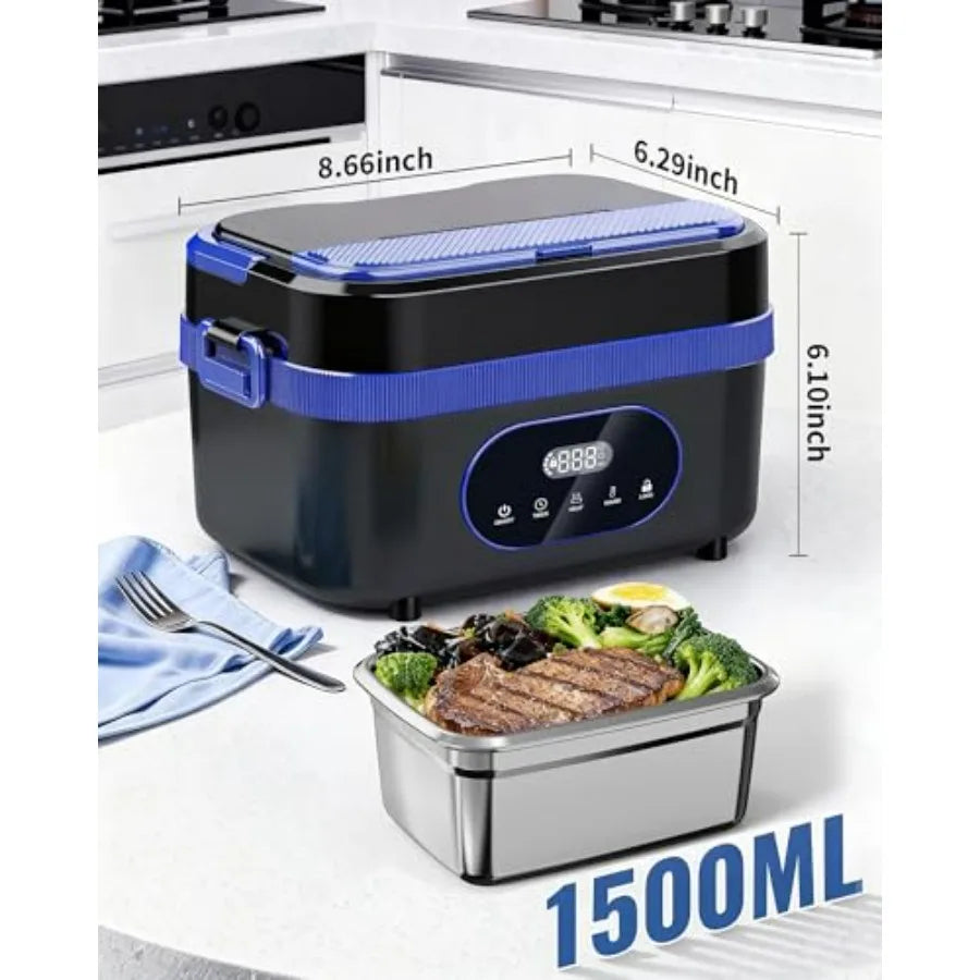Enjoy hot, homemade food wherever you go with this cordless electric lunch box. Designed with a large 1500ml (6.25 cups) capacity and upgraded 5D surround heating technology, it evenly warms your meals for consistent results. Whether you're at work, traveling, or outdoors, this portable heated lunch box keeps your food warm and ready to enjoy.