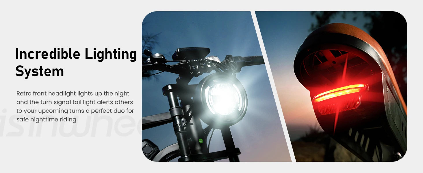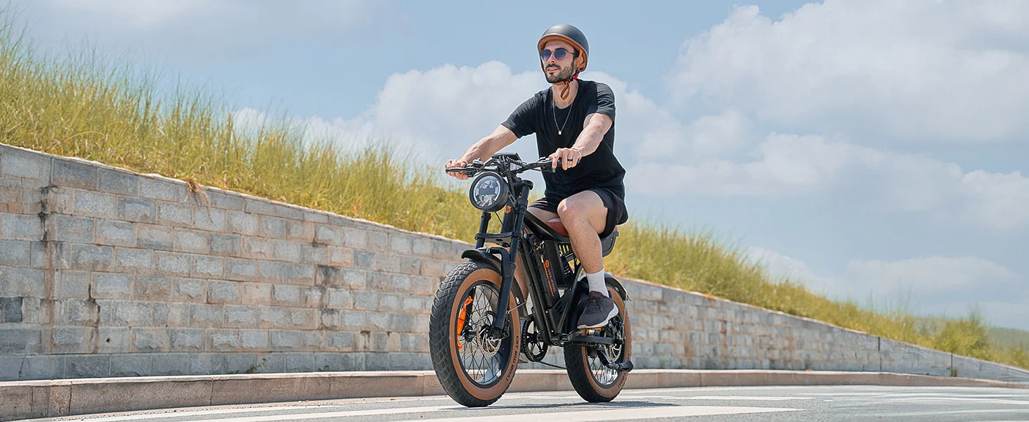 Designed with a retro motorcycle-style frame, 20x4.0" fat tires, and a dual-shock suspension system, it combines modern electric efficiency with classic design. A 7-speed Shimano-style drivetrain plus four riding modes and walk assist give you complete control for every adventure.