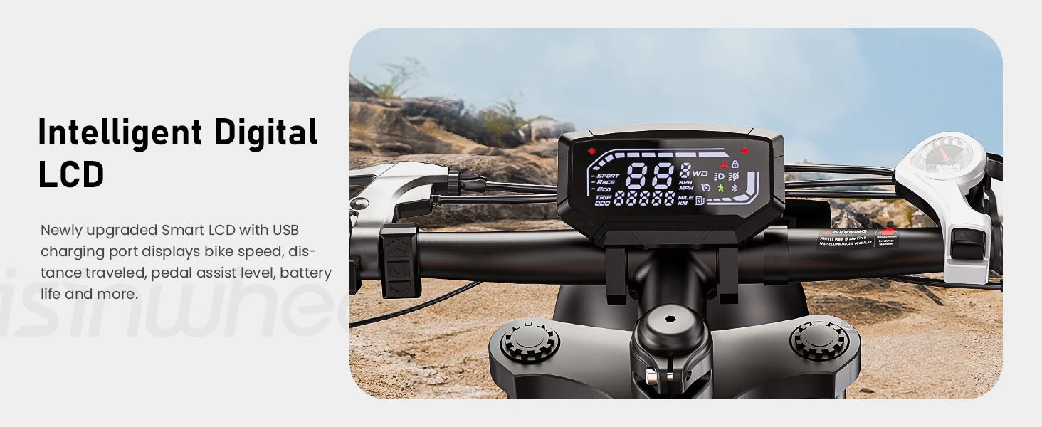 Smart LCD Display – Tracks speed, trip, PAS level, and battery life; includes USB charging port