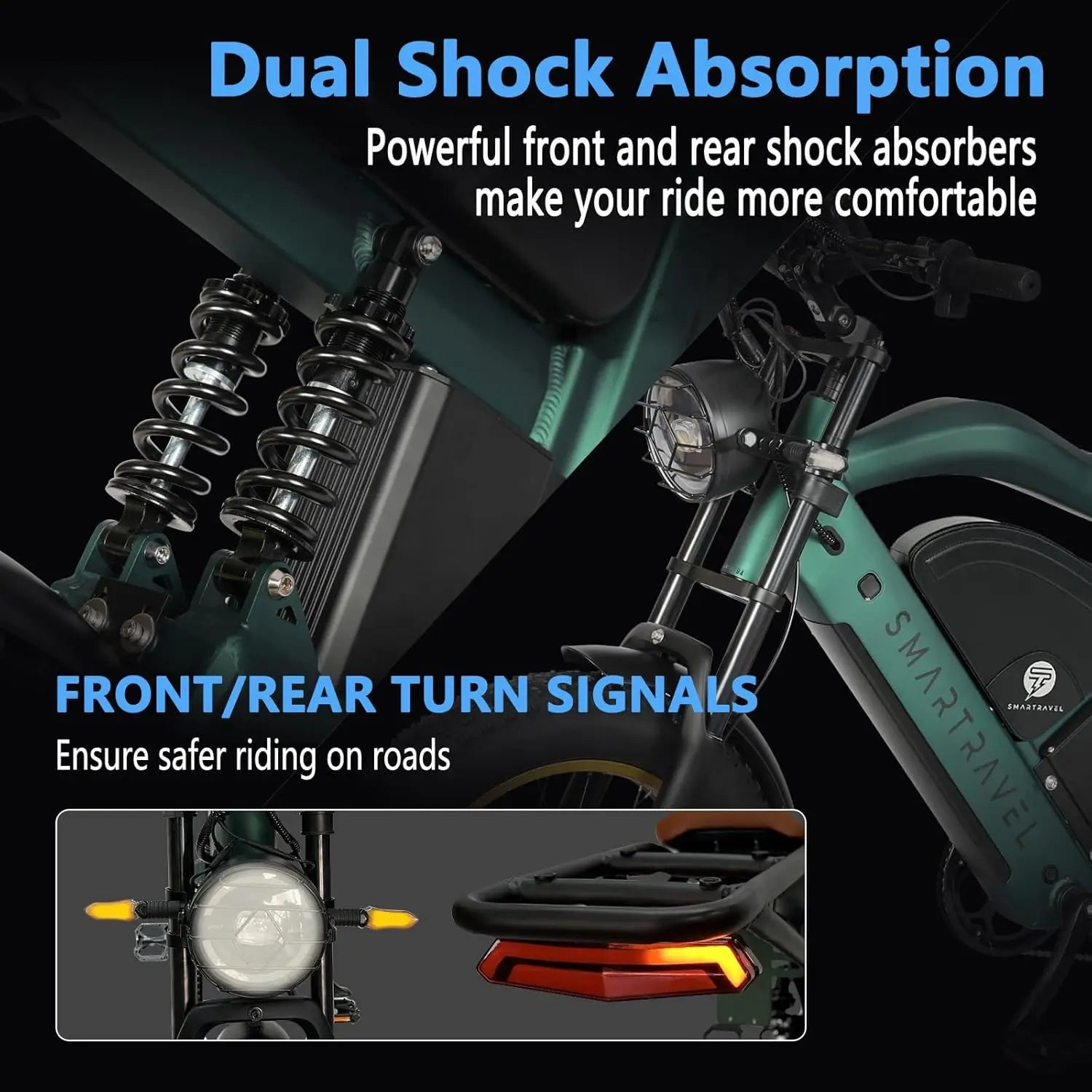 Smartravel 1200W Electric Bike for Adults – 48V 25Ah Battery, APP Control, Full Suspension Fat Tire E-Bike with GPS Tracking & Hydraulic Brakes