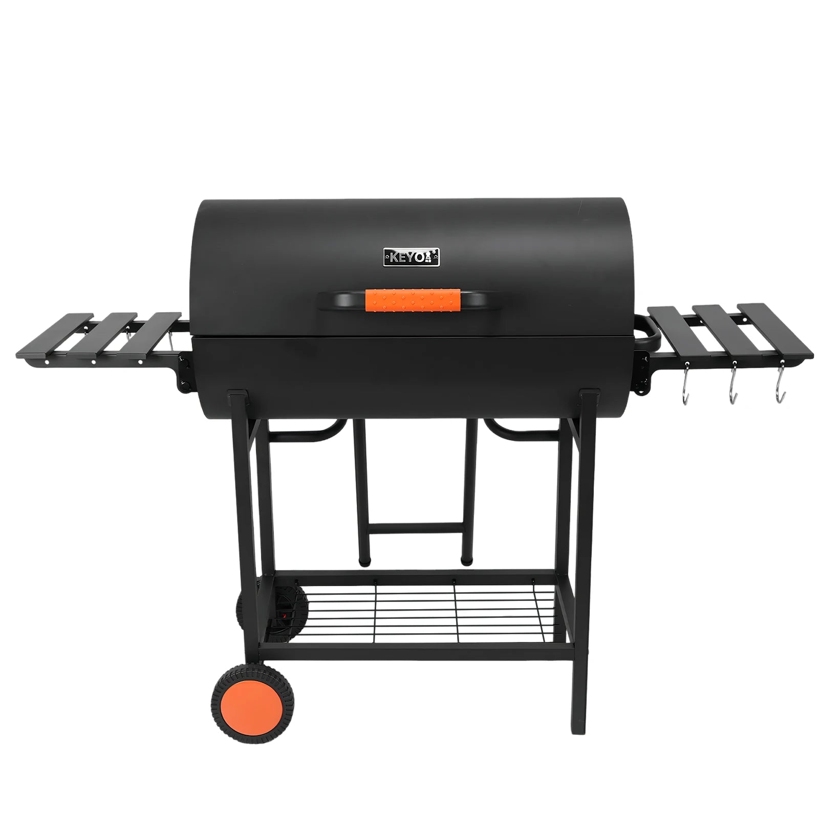 Large Bottom Storage Shelf: Spacious lower rack holds charcoal bags, utensils, and other BBQ essentials within easy reach.