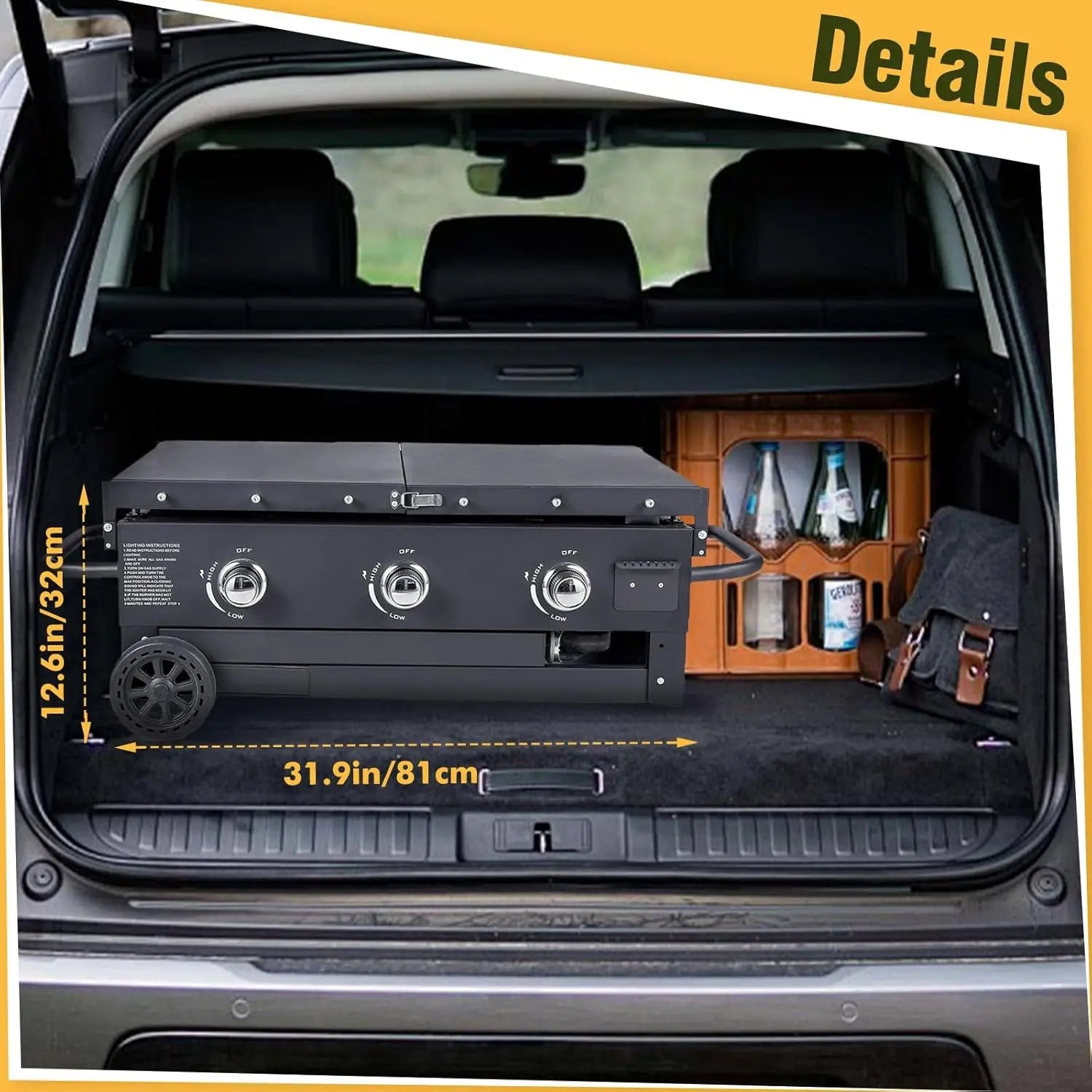 Foldable Flat Top Grill with 3 Burners and Dual Folding Shelves – 36" Outdoor Propane Griddle – 45,000 BTU High-Performance BBQ Grill