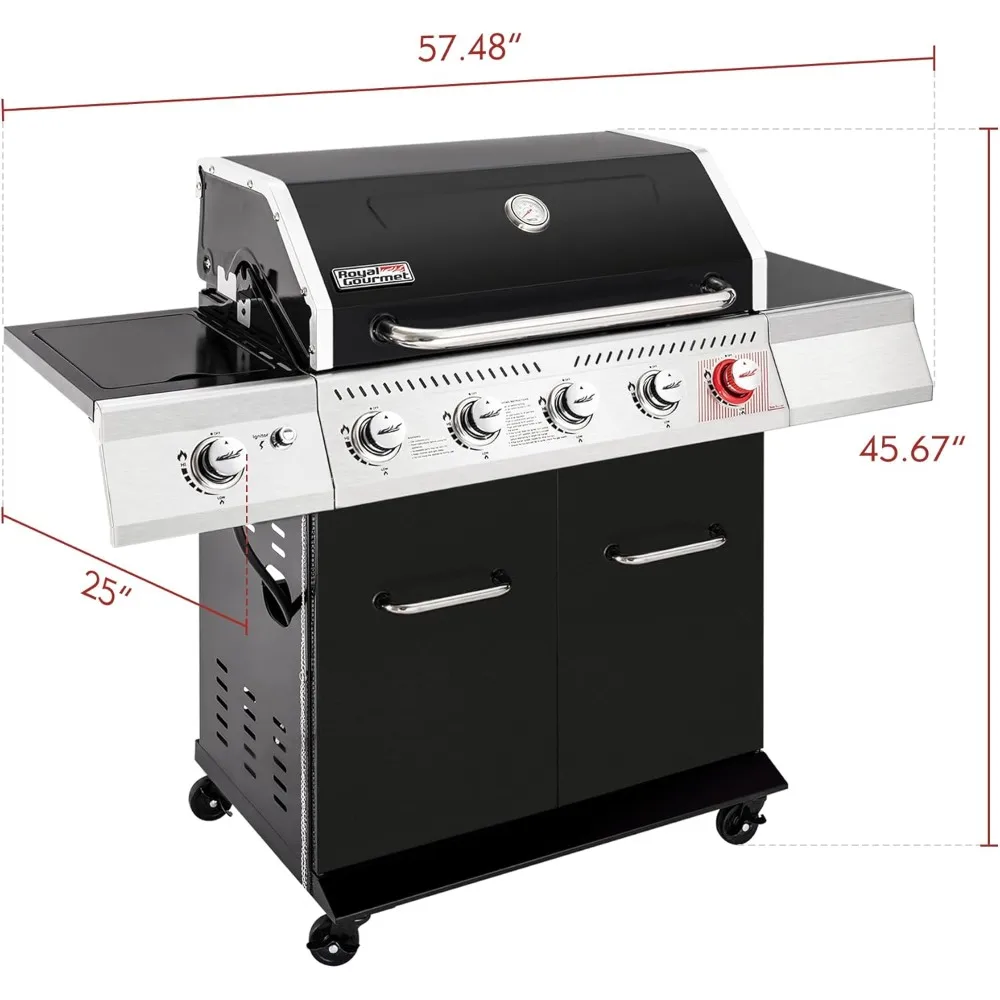GA5404H 5-Burner Propane Gas Grill with Side Burner & Warming Rack – 64,000 BTU Outdoor BBQ Grill