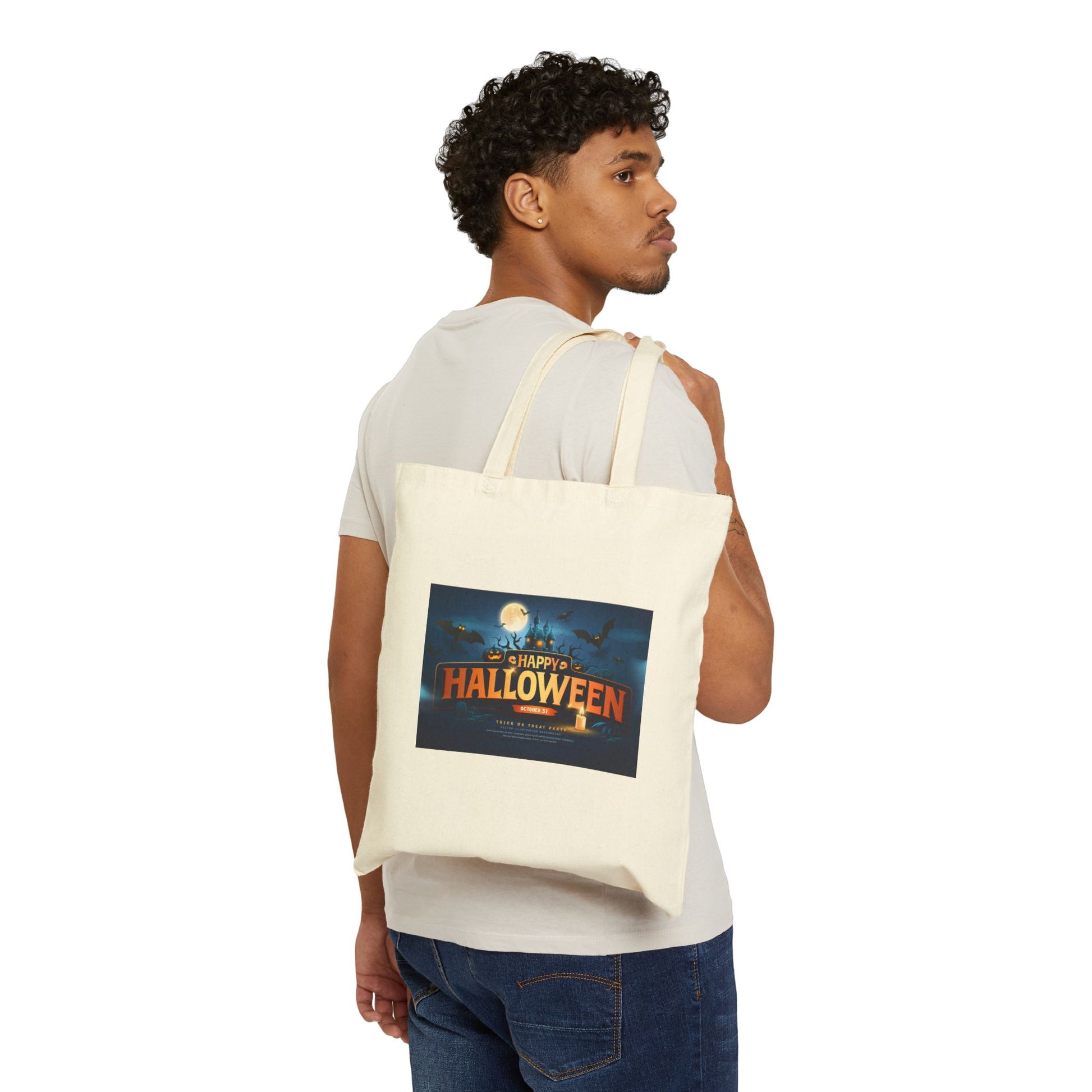 Halloween Themed Cotton Canvas Tote Bag, Eco-Friendly Bag, Trick or Treat Tote, Spooky Shopping Bag, Halloween Party Favor