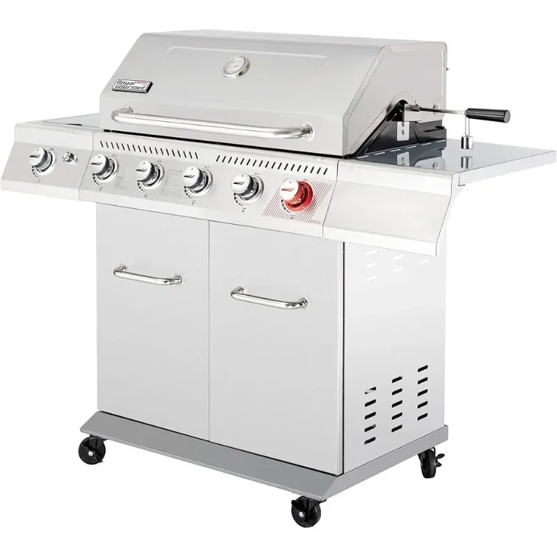 HOT 5-Burner Propane Gas Grill with Side Burner – 64,000 BTU Stainless Steel BBQ Grill (GA5404S)