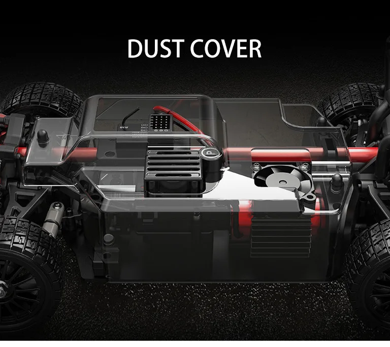 Brushless Speed & Torque: Powered by a 2845 3700KV brushless motor with aluminum heat sink and cooling fan, reaching 42km/h+, and up to 55km/h with 3S battery.