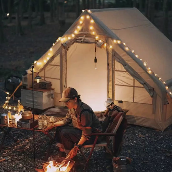 Upgrade your outdoor adventures with this premium inflatable camping tent, designed for quick setup and all-season performance. Made from durable 600D Oxford fabric with a reflective Mylar interior, it offers excellent insulation to keep you comfortable in both cold and warm weather. The breathable cotton surface has a water-repellent treatment, so you stay dry even in unexpected rain—perfect for year-round camping.