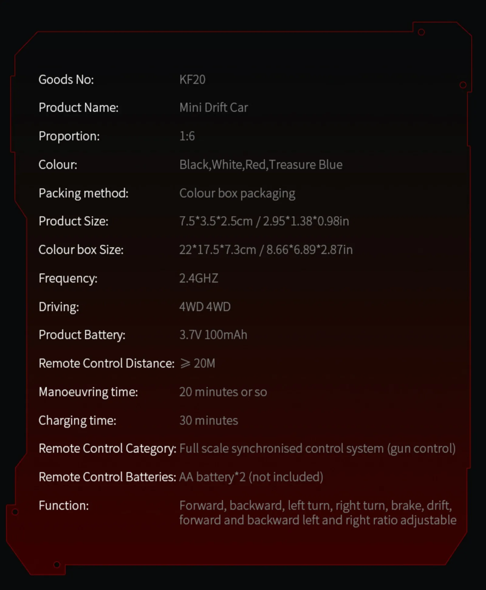This isn't just a toy—it’s a full-featured RC experience in a micro package. Designed for indoor racing, the KF20 lets you bring the action right to your desk. It’s the ultimate combo of fun, control, and collectibility, perfect for fans of RC cars, miniatures, and head-to-head racing battles.