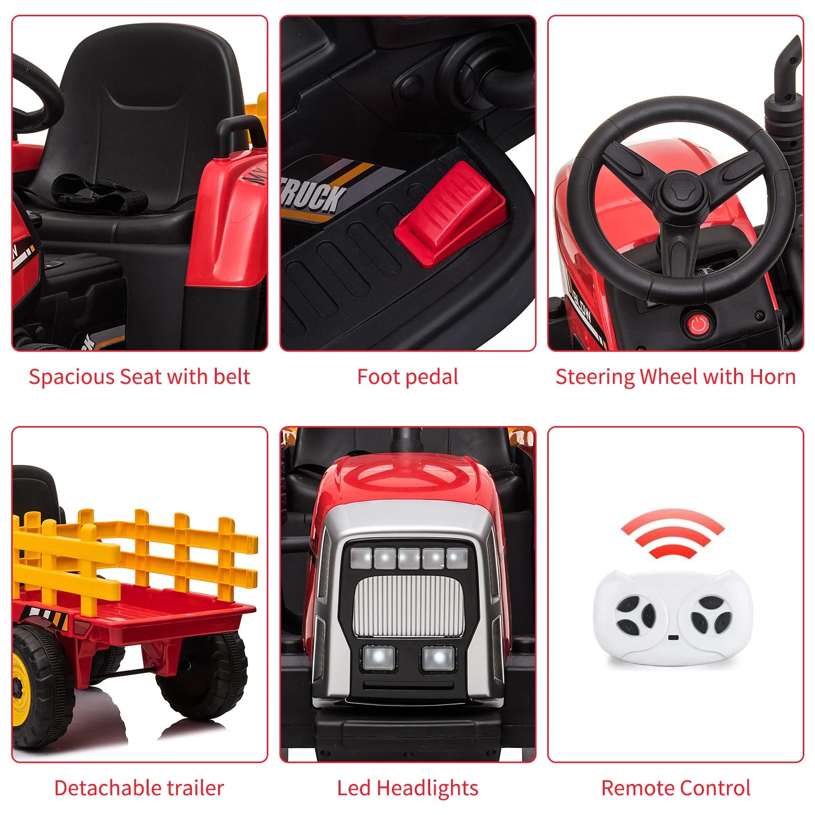 Kids Ride-On Electric Tractor with Remote Control & Trailer – 12V Battery 25w/35w, EVA Tires, Headlights & Bluetooth Music