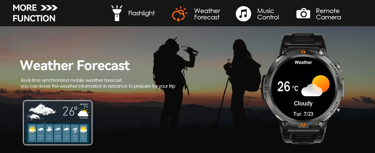 - Built-in Flashlight: Illuminate dark areas, trails, or emergency situations with a powerful wrist light.