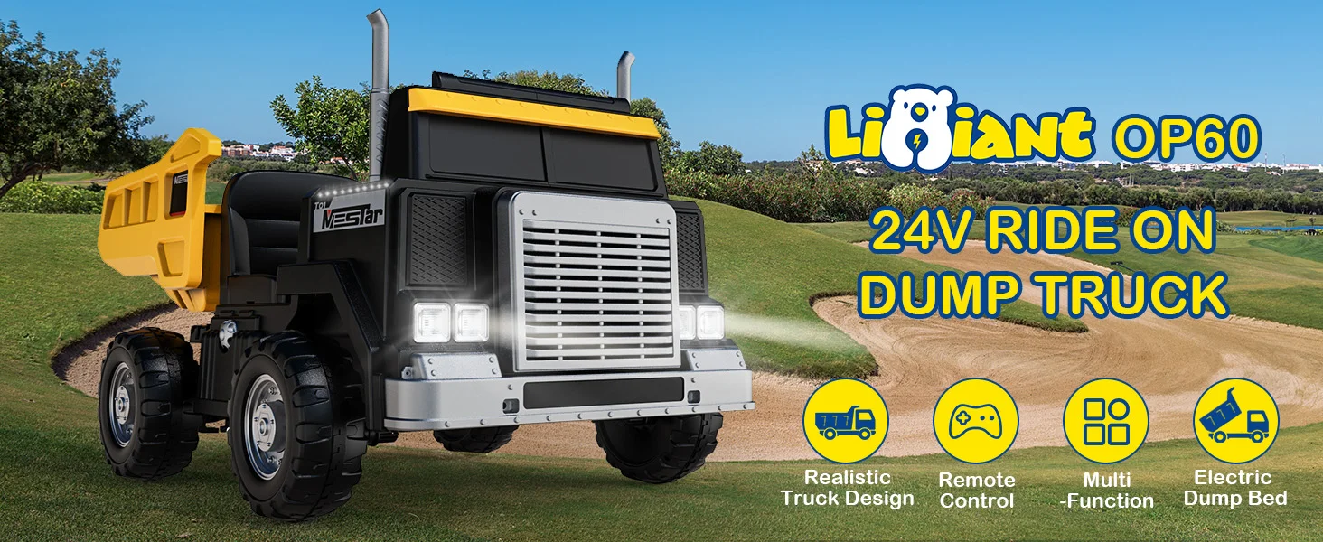 LIGIANT 24V Ride-On Dump Truck for Big Kids – 2-Seater Electric Truck with Remote Control, Power Dump Bed, 4WD Switch, Bluetooth & Suspension
