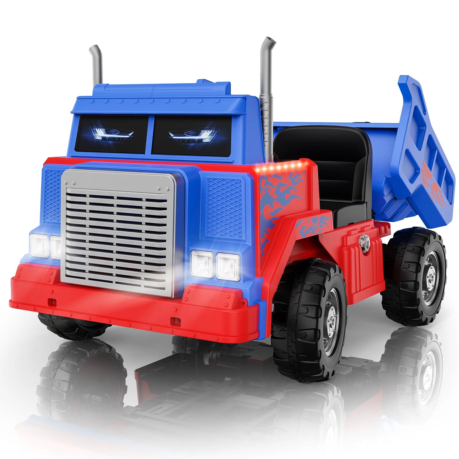 Power Dump Bed: Automatic lift allows kids to load and dump sand, snow, leaves, and more — just like a real construction truck