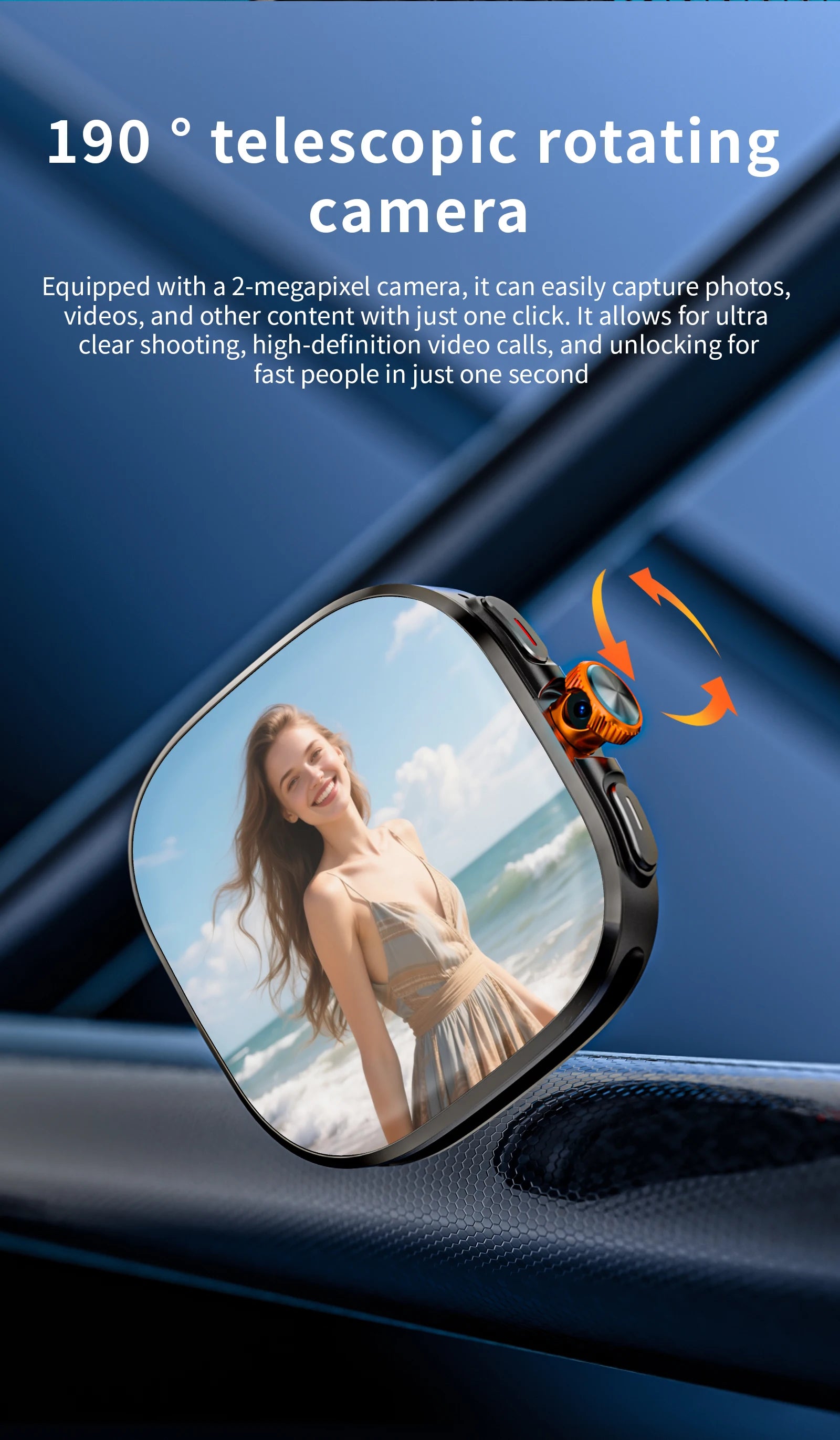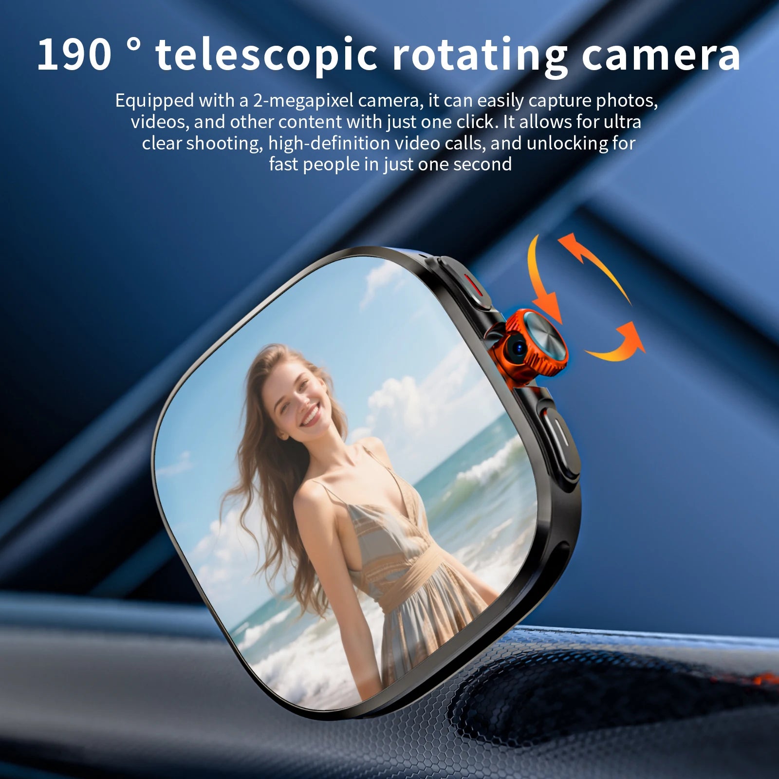 Next-Gen Photography: Capture every angle with the 190° rotating camera—perfect for selfies and quick snapshots.