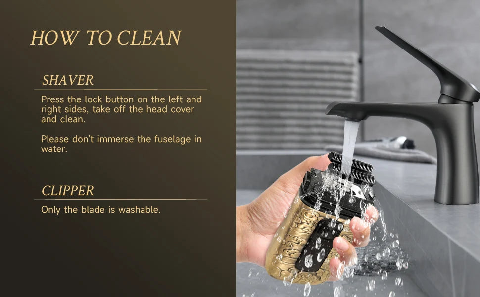 Crafted with a gold-plated engraved body, this shaver and trimmer combo offers both durability and luxury while ensuring a comfortable grip for extended use.