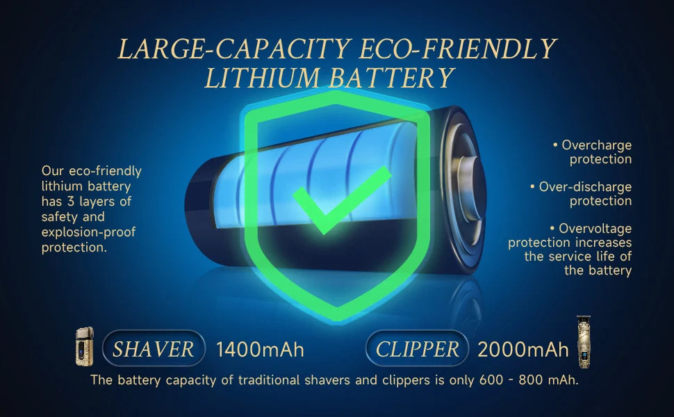 Enjoy up to 170 minutes (shaver) and 180 minutes (clipper) of continuous use with only 2–2.5 hours of Type-C fast charging. Compatible with wall adapters, power banks, and even car chargers.