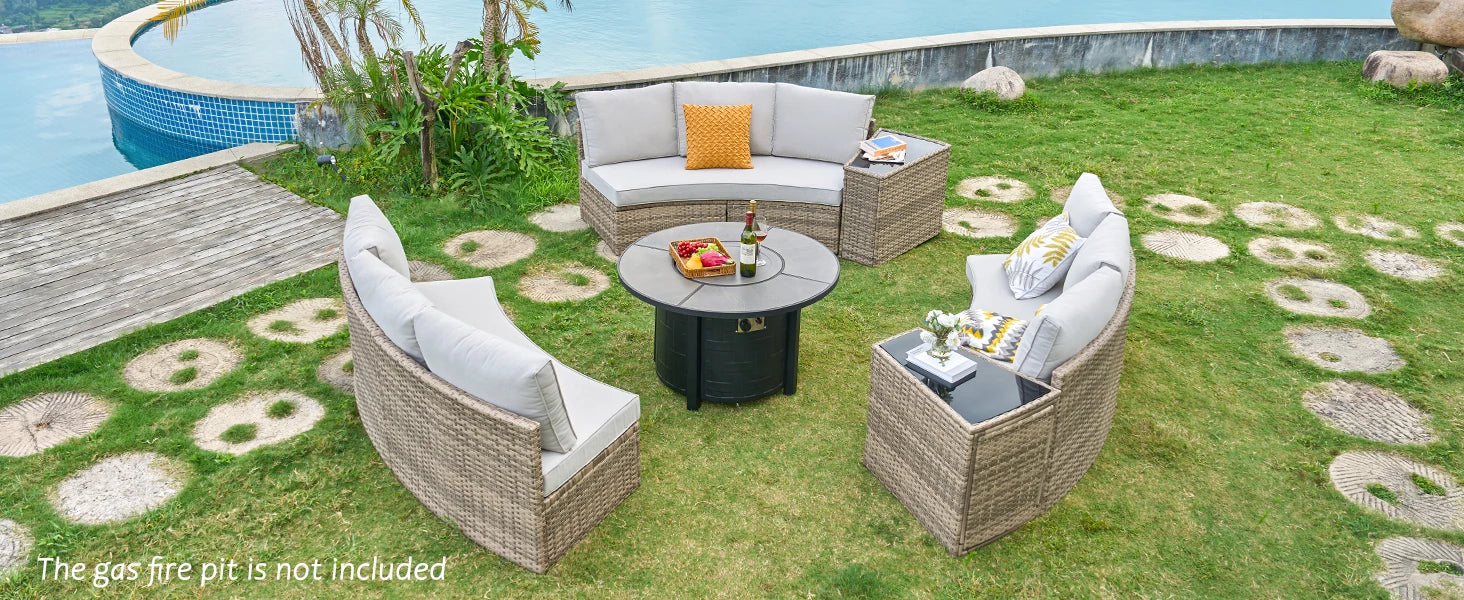 Patio Furniture Sets, 11 Piece Half-Moon Sectional Round Sofa Set, Outdoor Patio Furniture with Cushions & Wedge Table