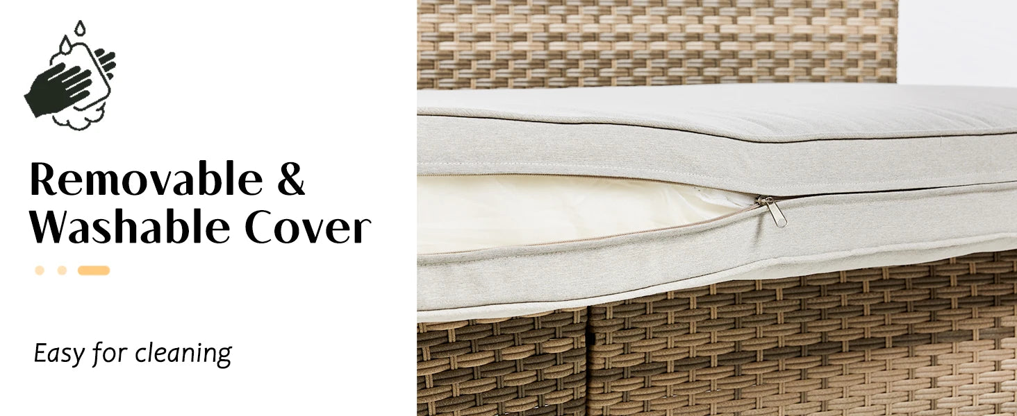- Low-maintenance design – PE wicker requires only occasional wiping, and the cushion covers are removable for easy cleaning.