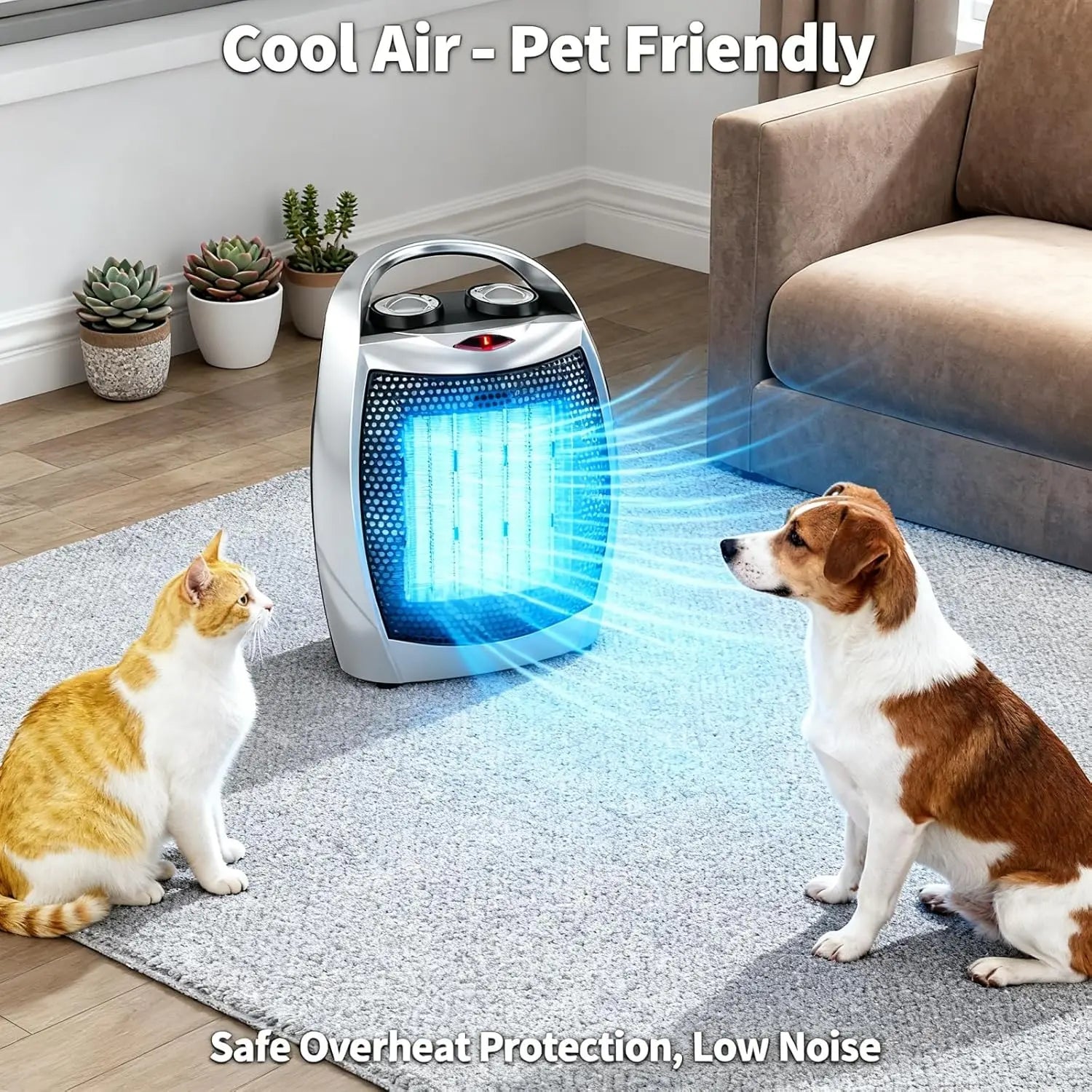 Portable Electric Space Heater for Home & Office – 1500W/750W Ceramic Desktop Heater with Thermostat, Tip-Over & Overheat Protection