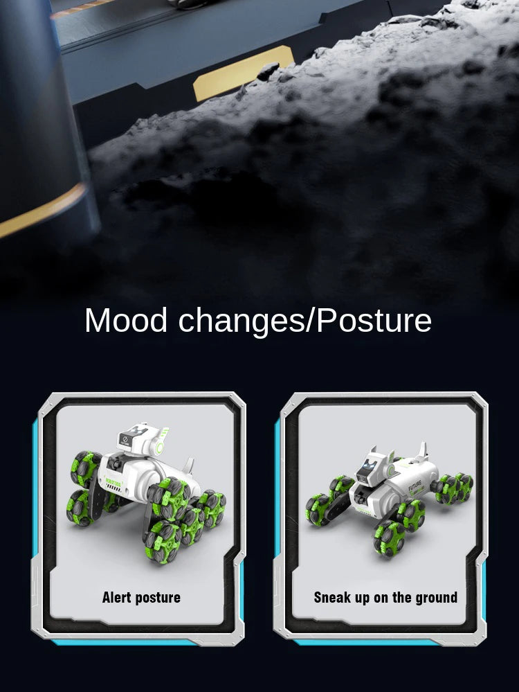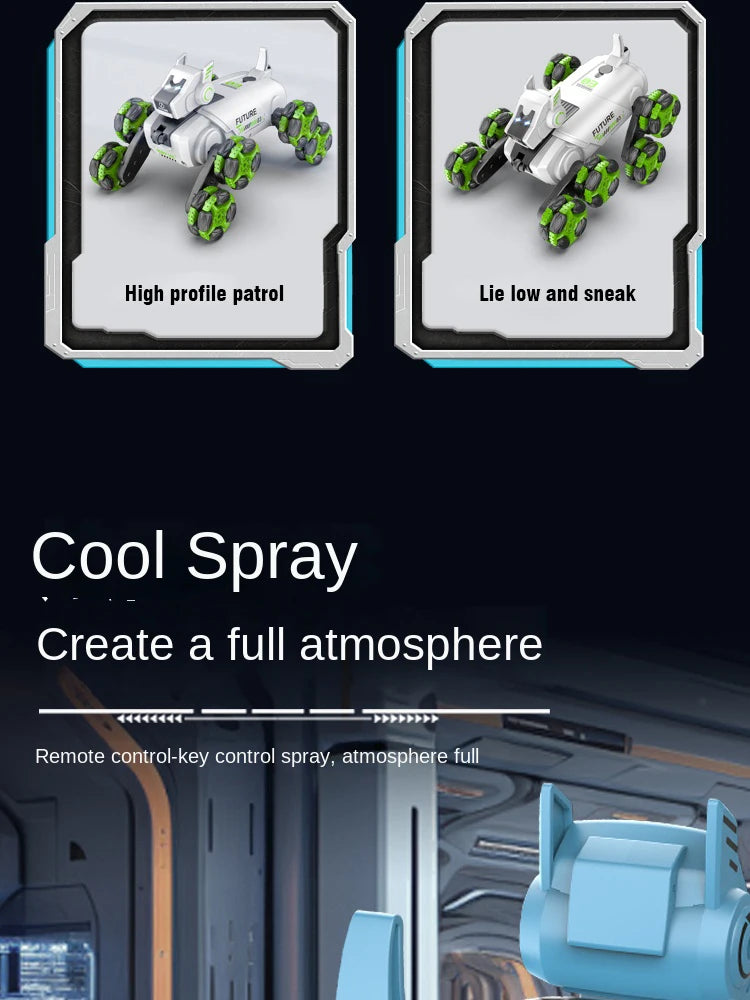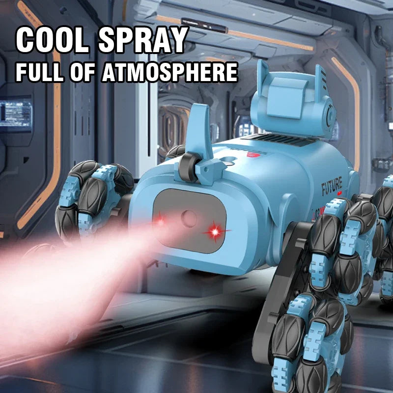 Unleash a world of excitement with the RC Mechanical Dog Robot—an interactive electronic pup packed with lights, music, and motion. This dual-control robot toy responds to both a standard remote and a motion-sensing watch, giving kids full control over its flips, spins, and sprays. Designed for children aged 3 and up, it brings entertainment and tech together in one high-energy toy.