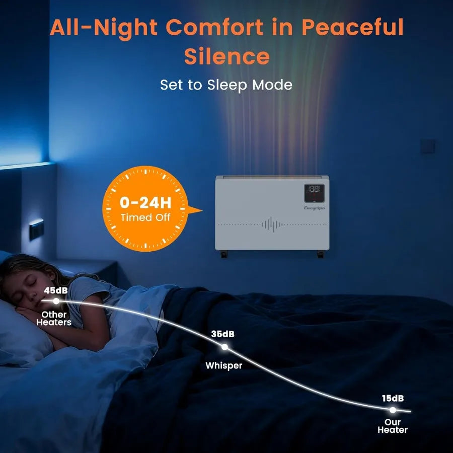 Smart Wall Heater 1500W Wireless Remote Control Electric Space Heater for Indoor Use Wall Mounted Floor Heating with Thermostat
