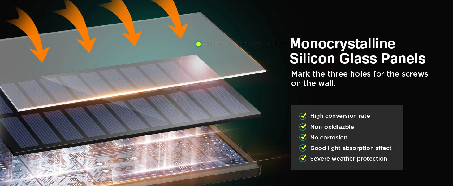 High-Efficiency Solar Panel: Extra-large tempered glass solar panel increases charging speed by 35%.