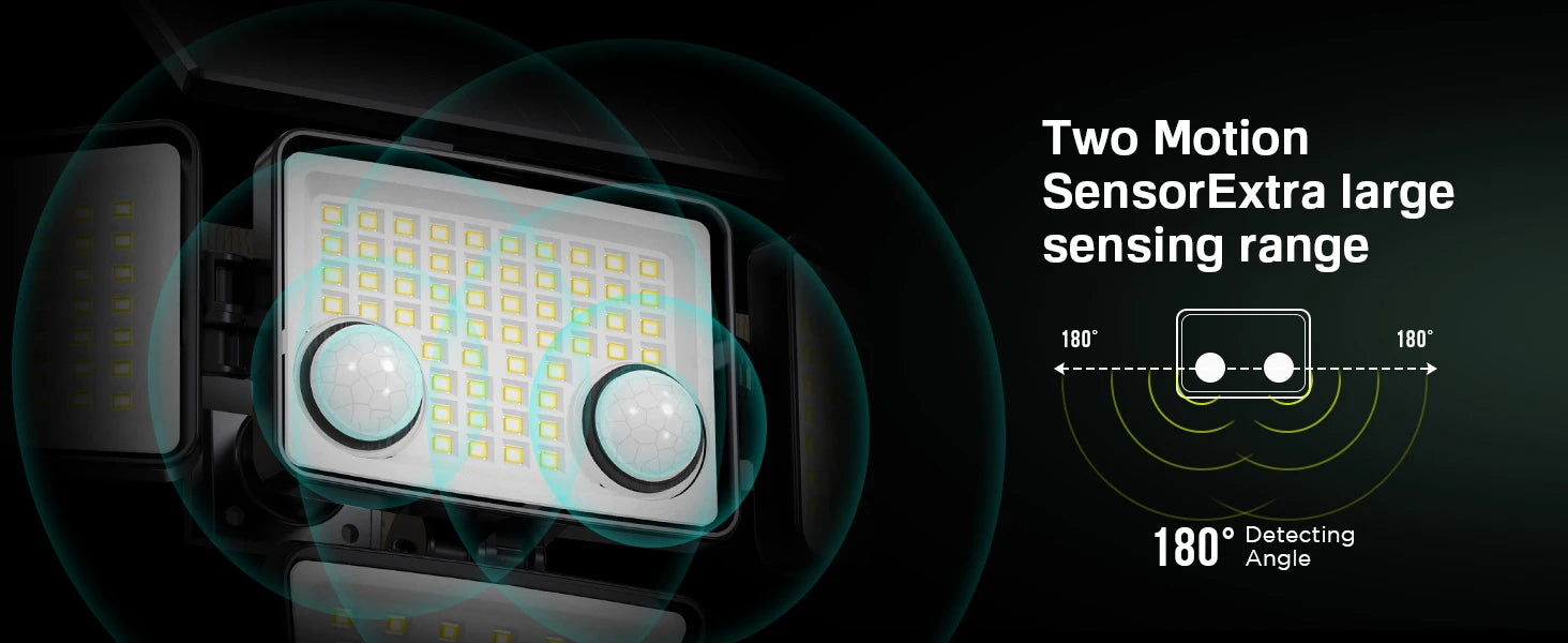 Dual PIR Motion Sensors: Detects motion up to 40 feet within a 180° range for instant activation.