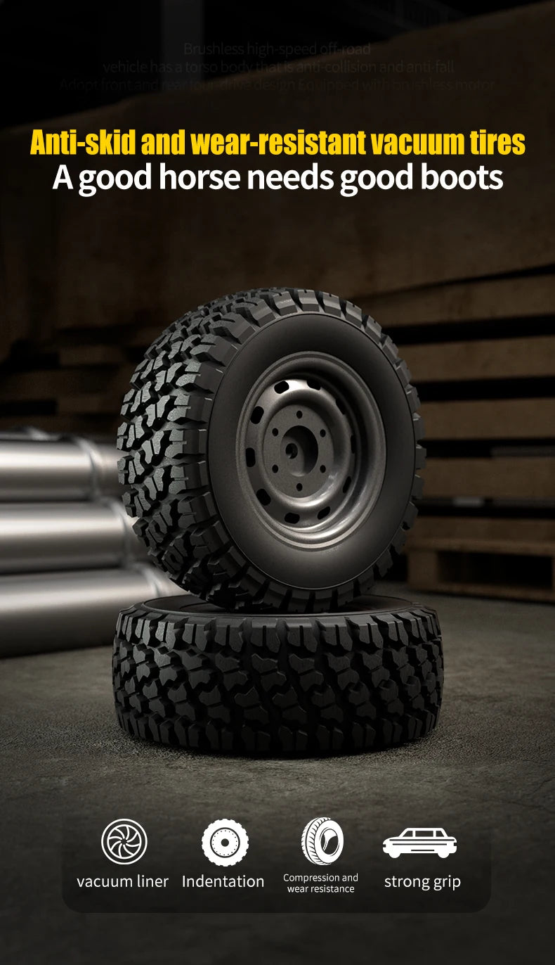 All-Terrain Ready: Climb, drift, and conquer nearly any surface with powerful 4WD and advanced traction.