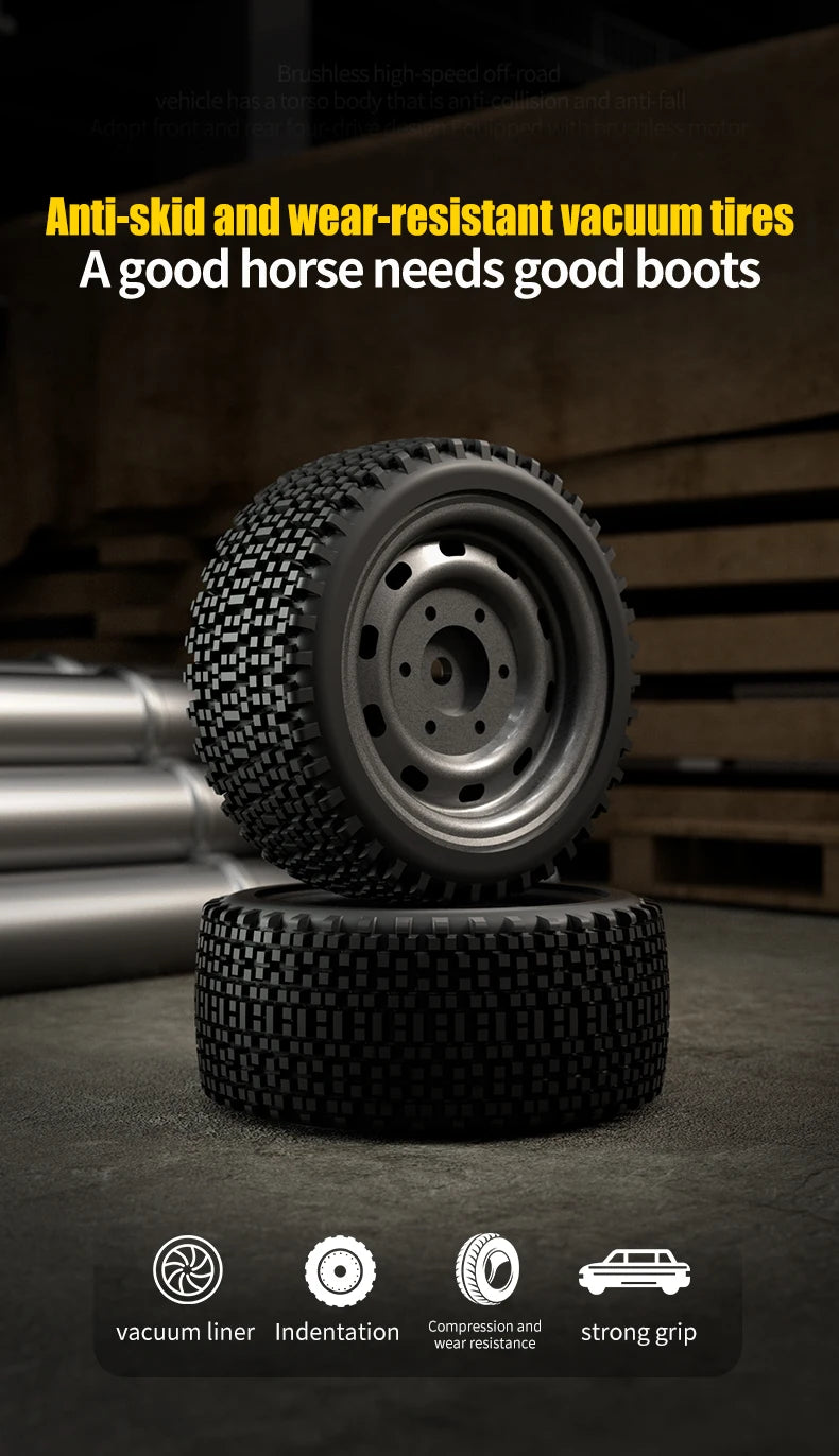 Brushless & Brushed Options: Choose between the ultra-fast PRO brushless version (70KM/H) or the high-performance brushed version (50KM/H) to match your racing needs.