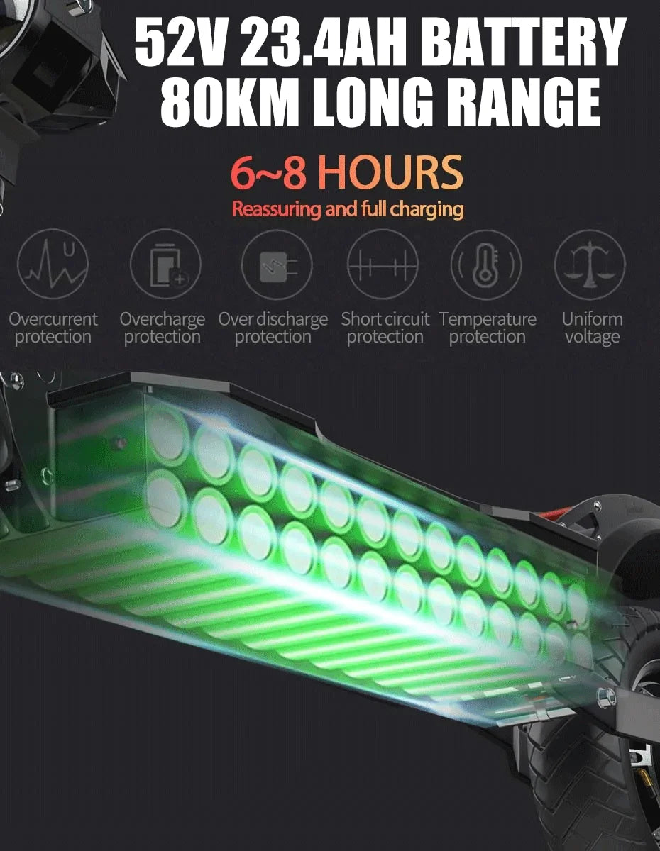 - Battery: 52V 23.4Ah lithium battery