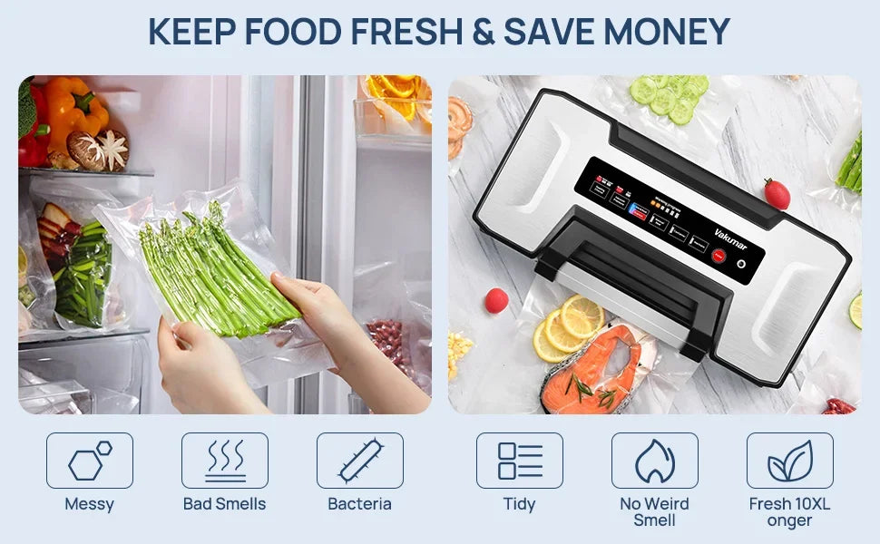 Unlike ordinary sealers, the Vakumar VH5186 combines professional sealing performance with smart convenience. It’s perfect for preserving leftovers, meal prep, or sous-vide cooking. With quick operation, strong suction, and a secure double seal, it keeps your food fresh, flavorful, and ready when you are.