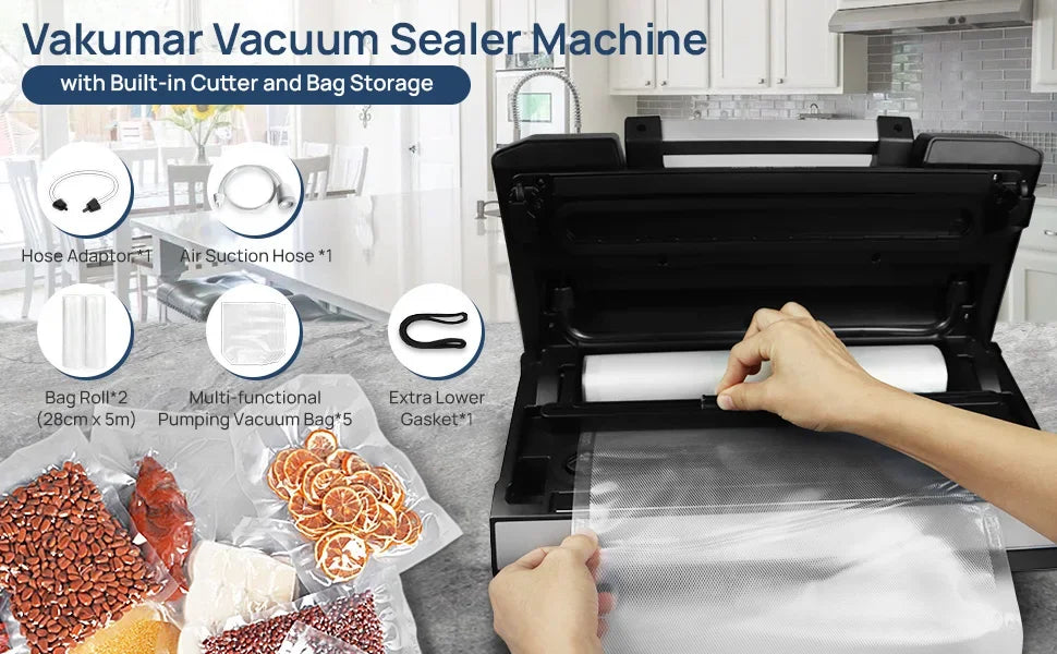 Vakumar VH5186 Food Vacuum Sealer Machine with Built-In Cutter & Bag Storage