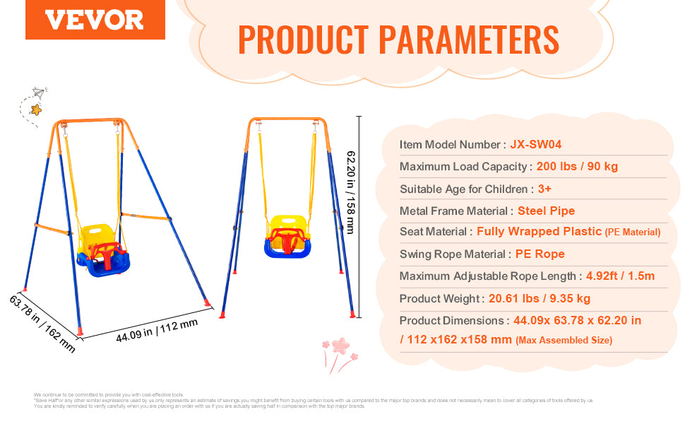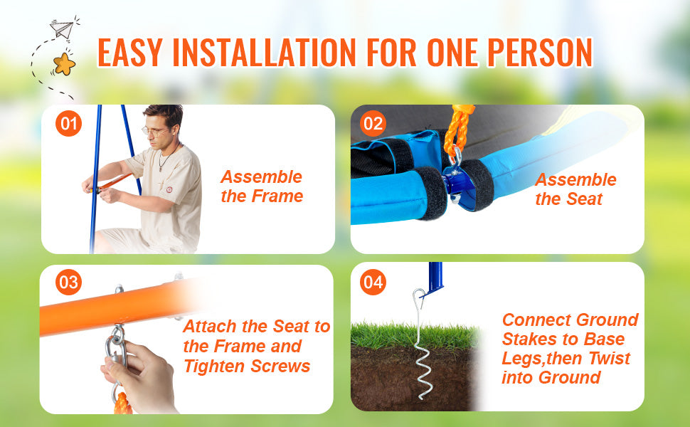 Installation is a breeze with the space-saving design and DIY-friendly instructions. The swing set easily disassembles for storage or travel, and the compact parts fit snugly into a car trunk — perfect for families on the go. Ideal for home backyards, parks, or school playgrounds, this versatile swing set adapts to wherever the fun needs to be.