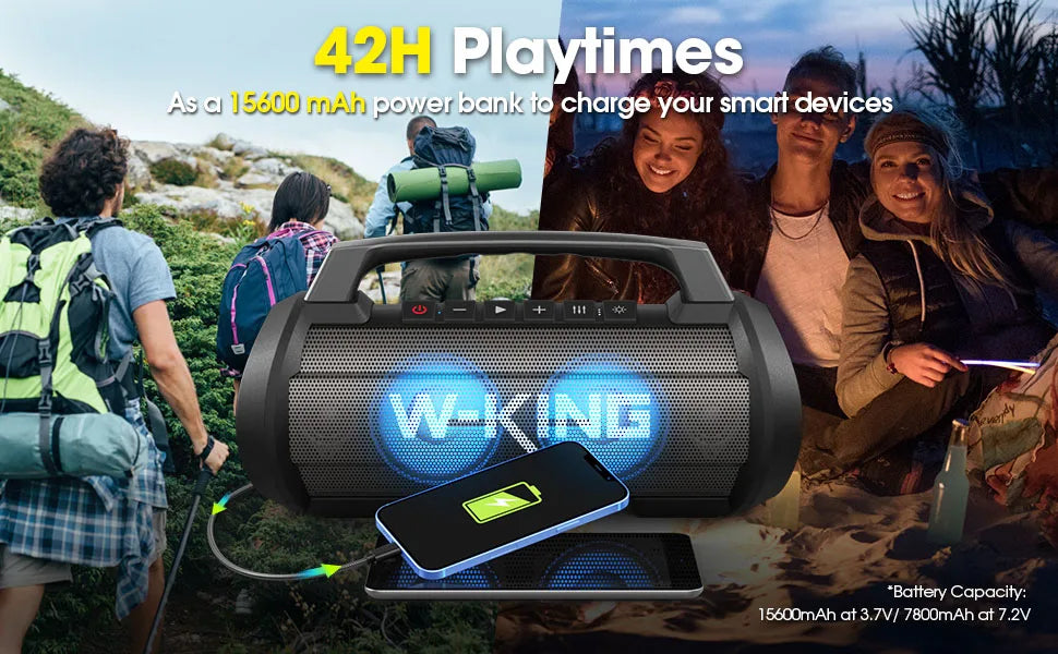 【70W RMS 120W PEAK】Immerse yourself in the cutting-edg audio with D10 Portable bluetooth speakers. The loud bluetooth speaker boast a formidable 70W RMS (120W PEAK) to blow you away, the dual 45W subwoofers orchestrated by a low-frequency regimen to resonates deep within your chest, and dual 15W tweeters for remarkable high-frequency precision and restoring intricated sonic subtleties. The W-KING D10 speakers bluetooth wireless loud are suitable for all musical genres: pop/rock/country/R&B/metal